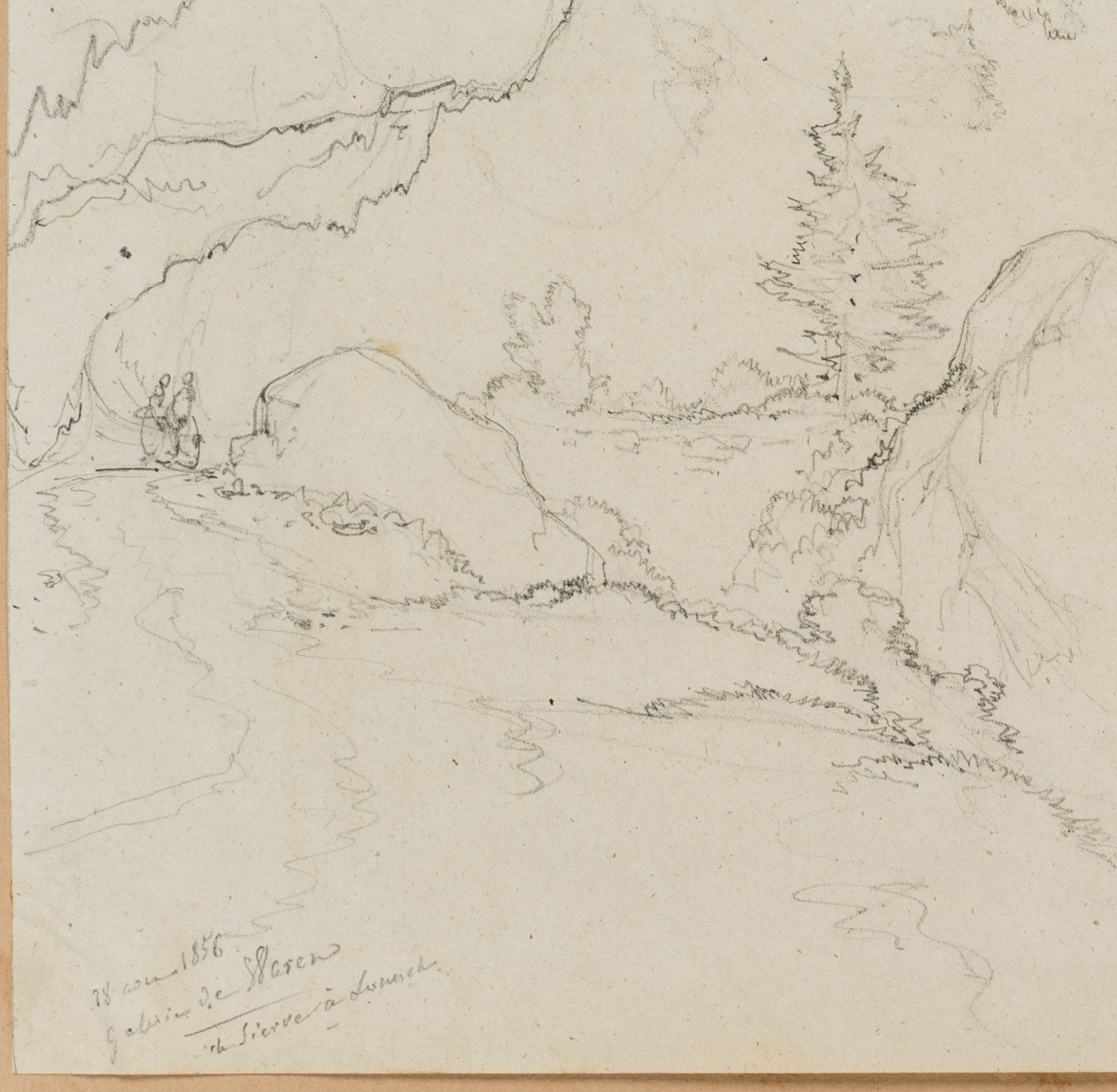 Aus einem Sammelalbum mit Reiseskizzen des Künstlers. “Esquisses faites par le Baron Edmond de Bretenières feudant les voyages en Suisse” (Skizzen, die Baron Edmond de Bretenieres während seiner Reisen in der Schweiz angefertigt hat).