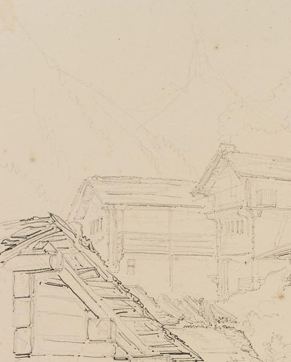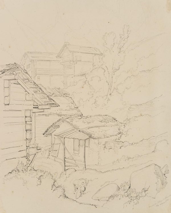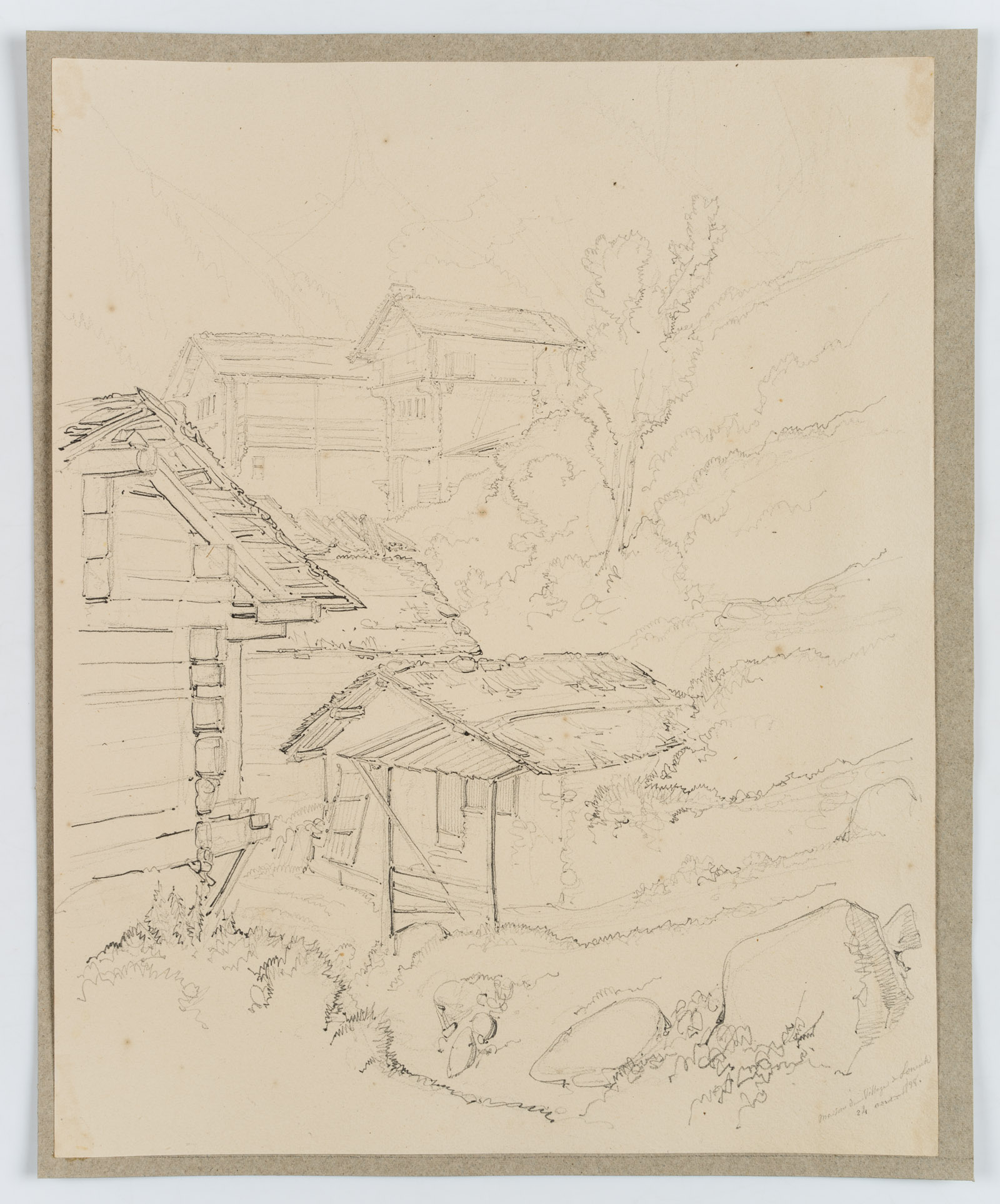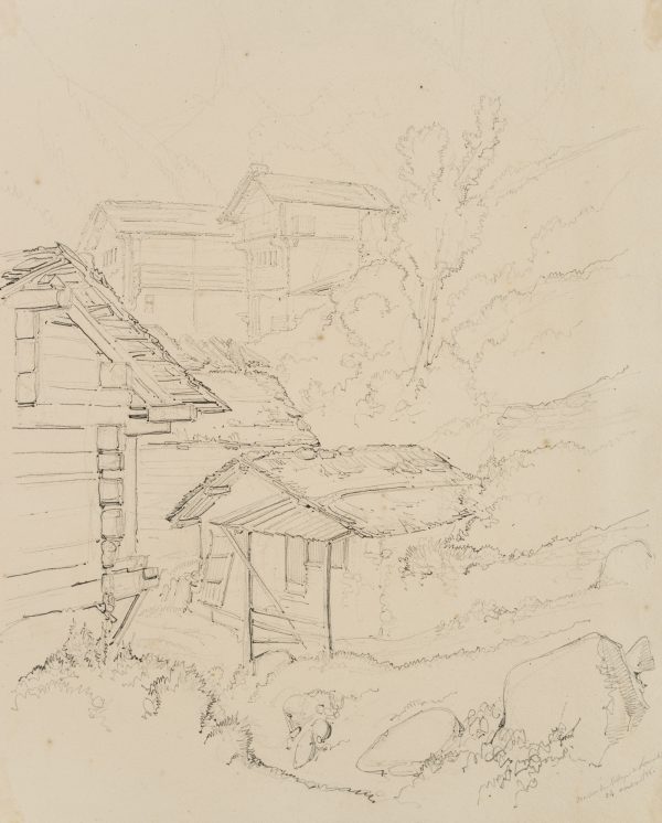 Edmond de Bretenières (1804 Dijon – 1882 ibid.), Houses in Leuk in the Canton of Valais, Loéche, Leigg, “maison du village à Louesch”, Journey to Switzerland, Sketchbook, 1838, Pencil