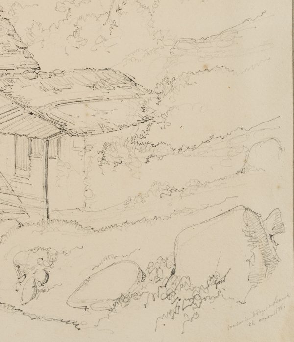 Aus einem Sammelalbum mit Reiseskizzen des Künstlers. “Esquisses faites par le Baron Edmond de Bretenières feudant les voyages en Suisse” (Skizzen, die Baron Edmond de Bretenieres während seiner Reisen in der Schweiz angefertigt hat).