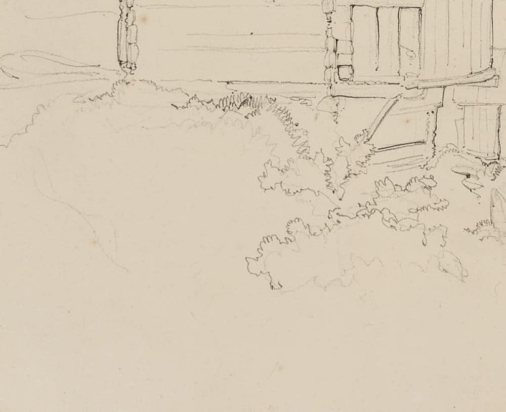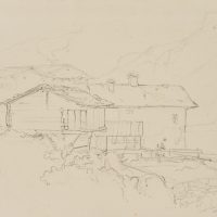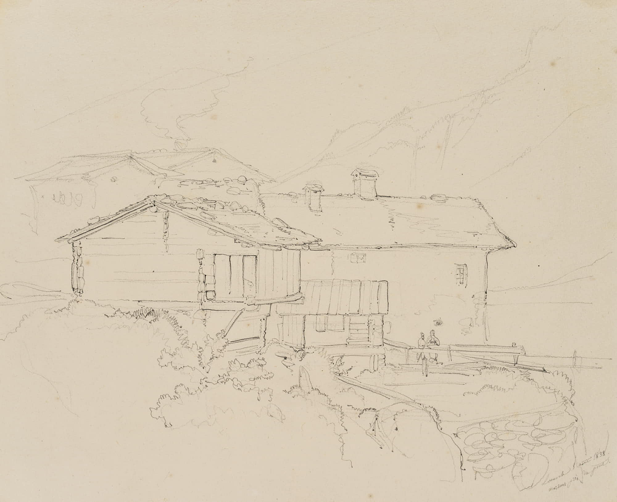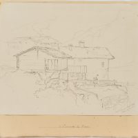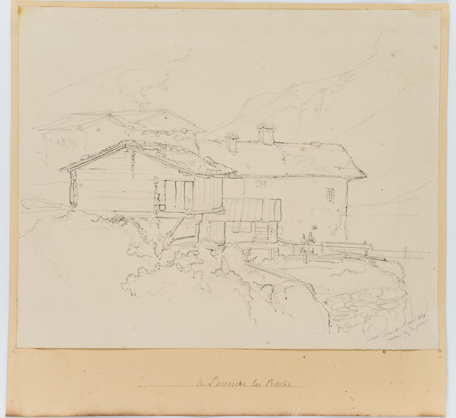 Edmond de Bretenières (1804 Dijon – 1882 ibid.), House by the bridge in Leukerbad in the canton of Valais, “Louesch” “maison près la pont”, journey to Switzerland, sketchbook, 1838, Pencil