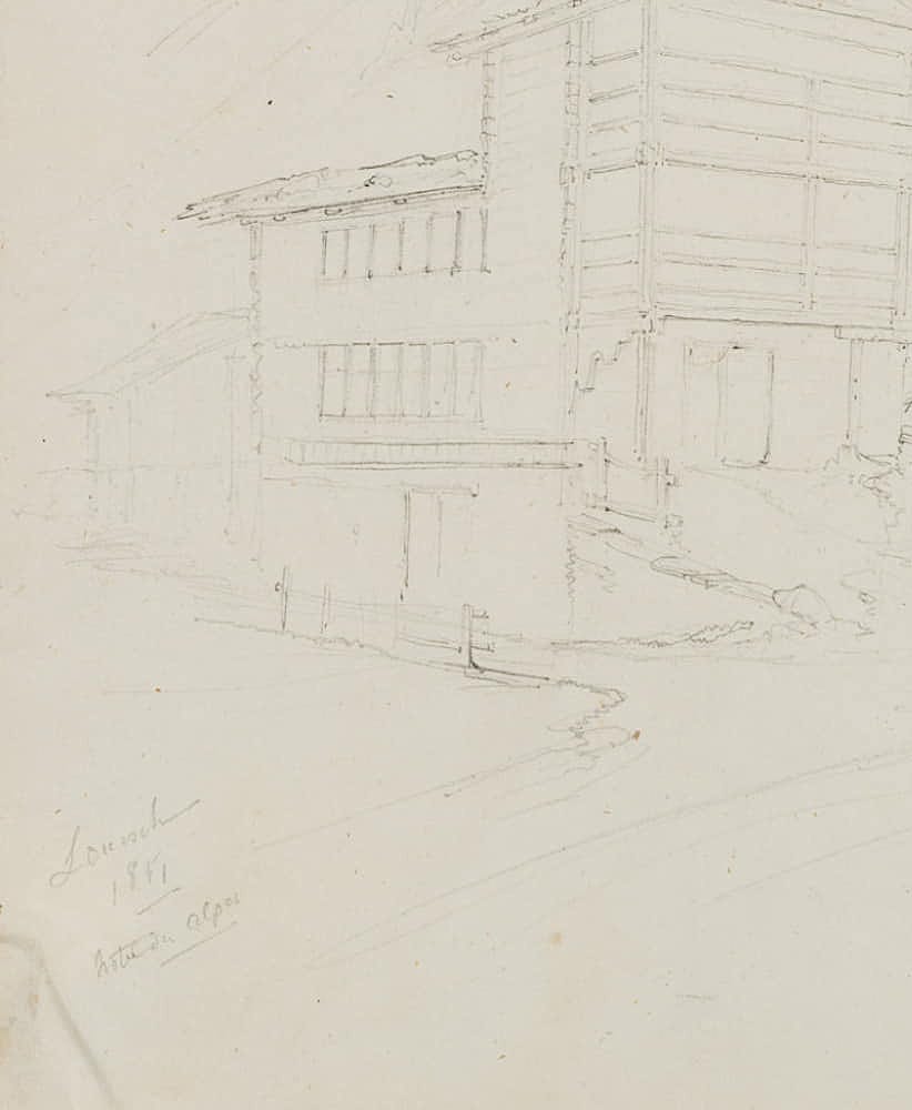 From a scrapbook with travel sketches by the artist. “Esquisses faites par le Baron Edmond de Bretenières feudant les voyages en Suisse” (Sketches made by Baron Edmond de Bretenieres during his travels in Switzerland).