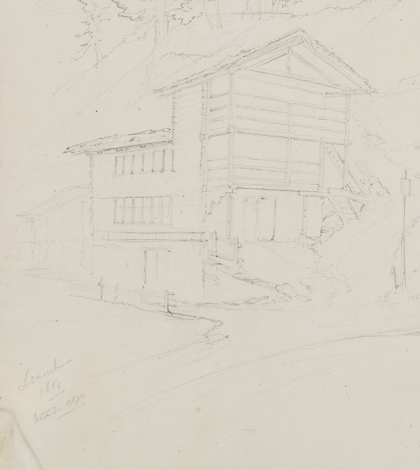 Edmond de Bretenières (1804 Dijon – 1882 ibid.), Hôtel des Alpes” in Leuk in the canton of Valais, Loéche, Leigg, “Louesch”, Trip to Switzerland, Sketchbook, 1851, Pencil
