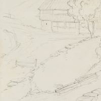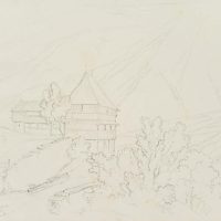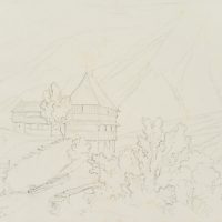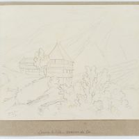 Edmond de Bretenières (1804 Dijon – 1882 ibid.), Hunting Lodge in the Mountains near Leuk in the Canton of Valais, Loéche, Leigg, “Louesch la Ville”, Journey to Switzerland, Sketchbook, 19th century, Pencil