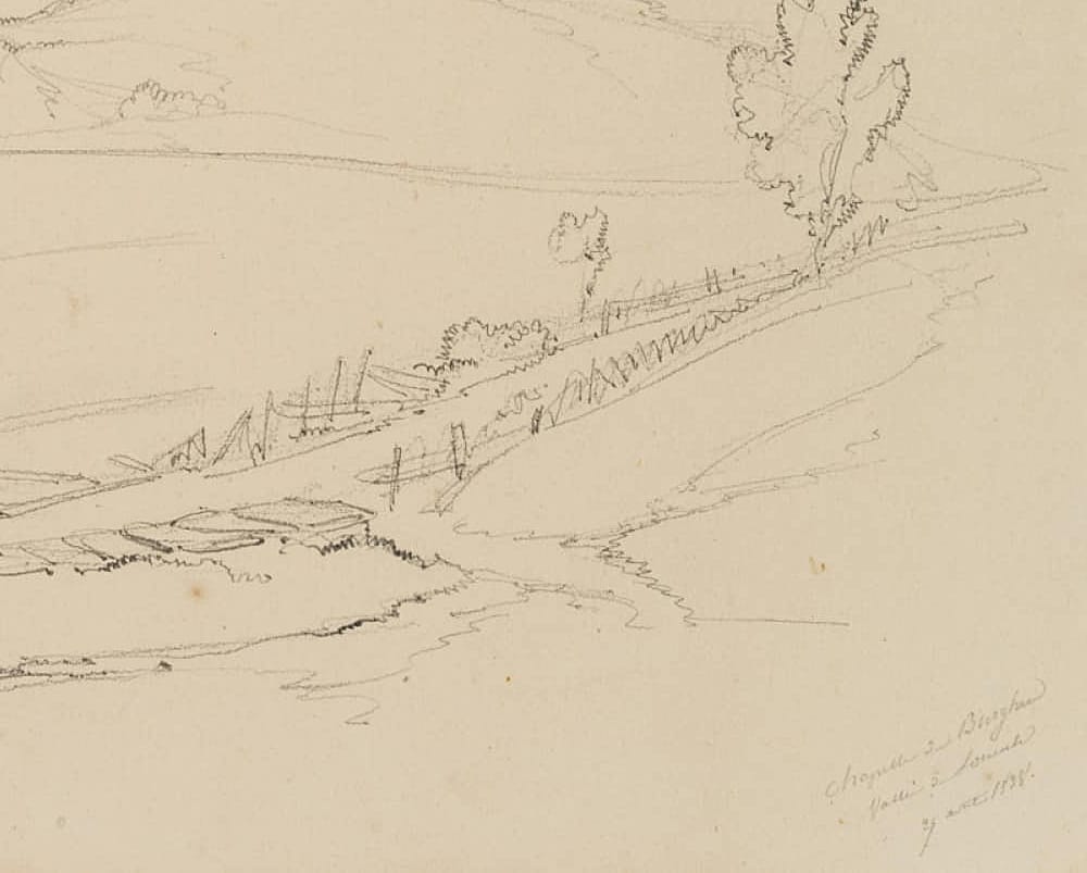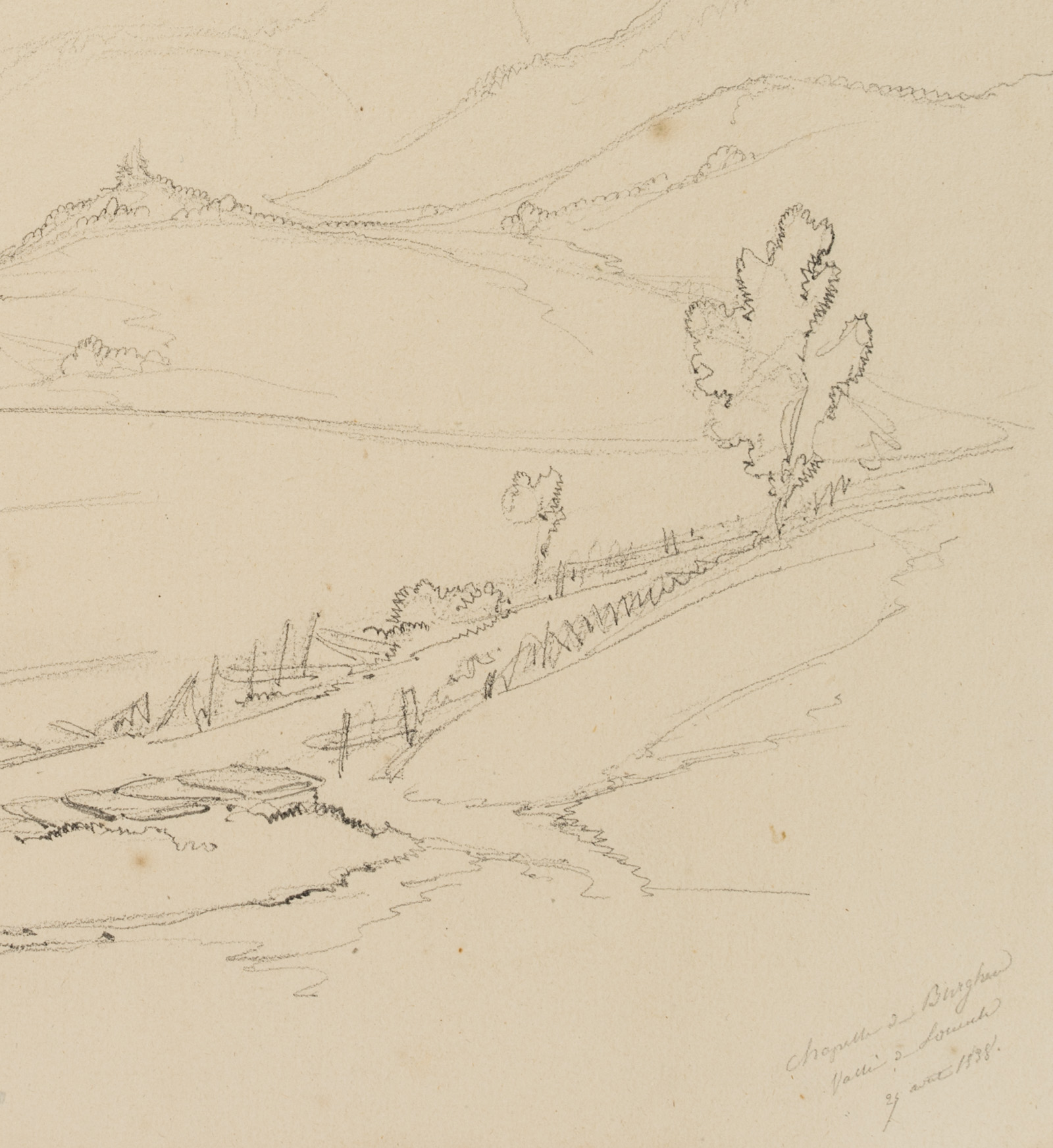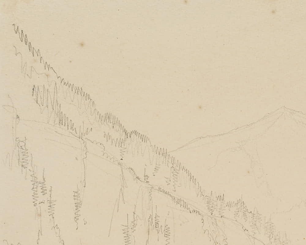 Aus einem Sammelalbum mit Reiseskizzen des Künstlers. “Esquisses faites par le Baron Edmond de Bretenières feudant les voyages en Suisse” (Skizzen, die Baron Edmond de Bretenieres während seiner Reisen in der Schweiz angefertigt hat).