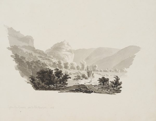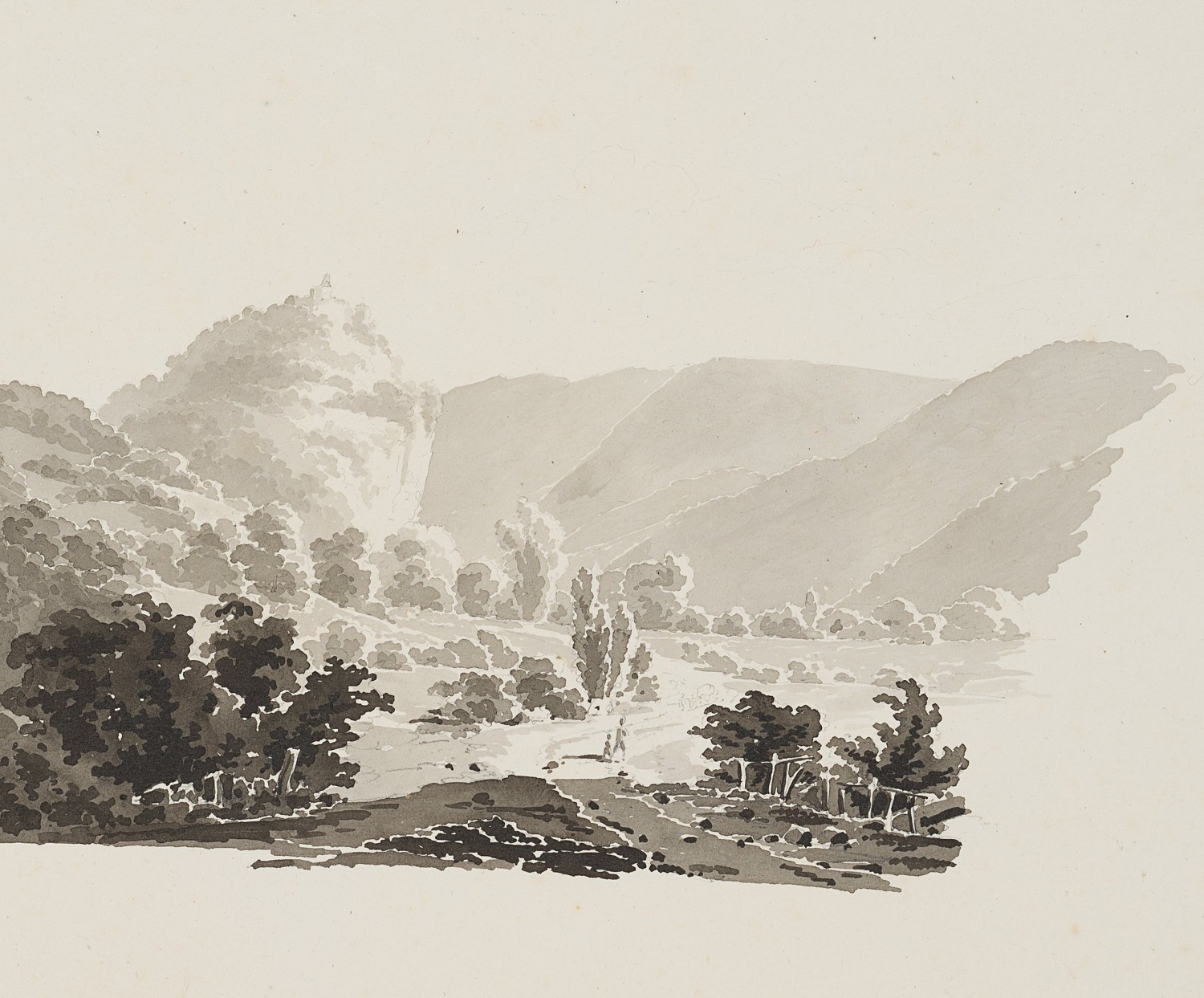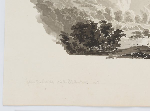 Edmond de Bretenières (1804 Dijon – 1882 ibid.), View of the Chapel of St George near Berschis in Sargans, Switzerland, 1825, Indian ink
