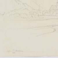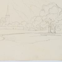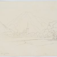 Edmond de Bretenières (1804 Dijon – 1882 ibid.), View of the church in Interlaken, Switzerland, pencil drawing on paper, 1825, Pencil
