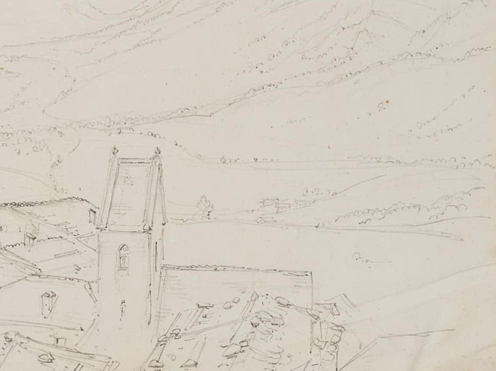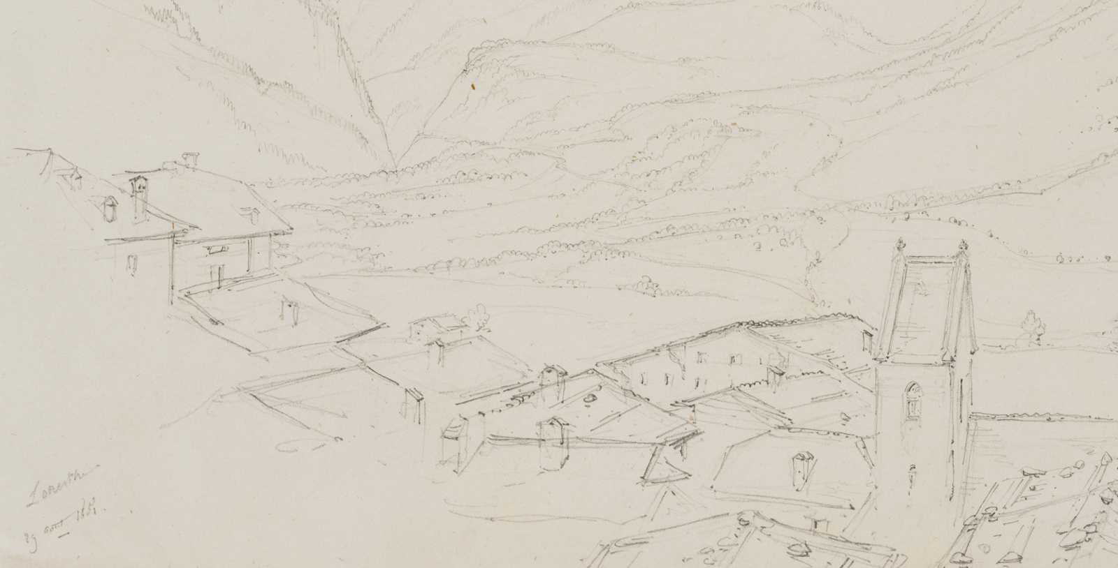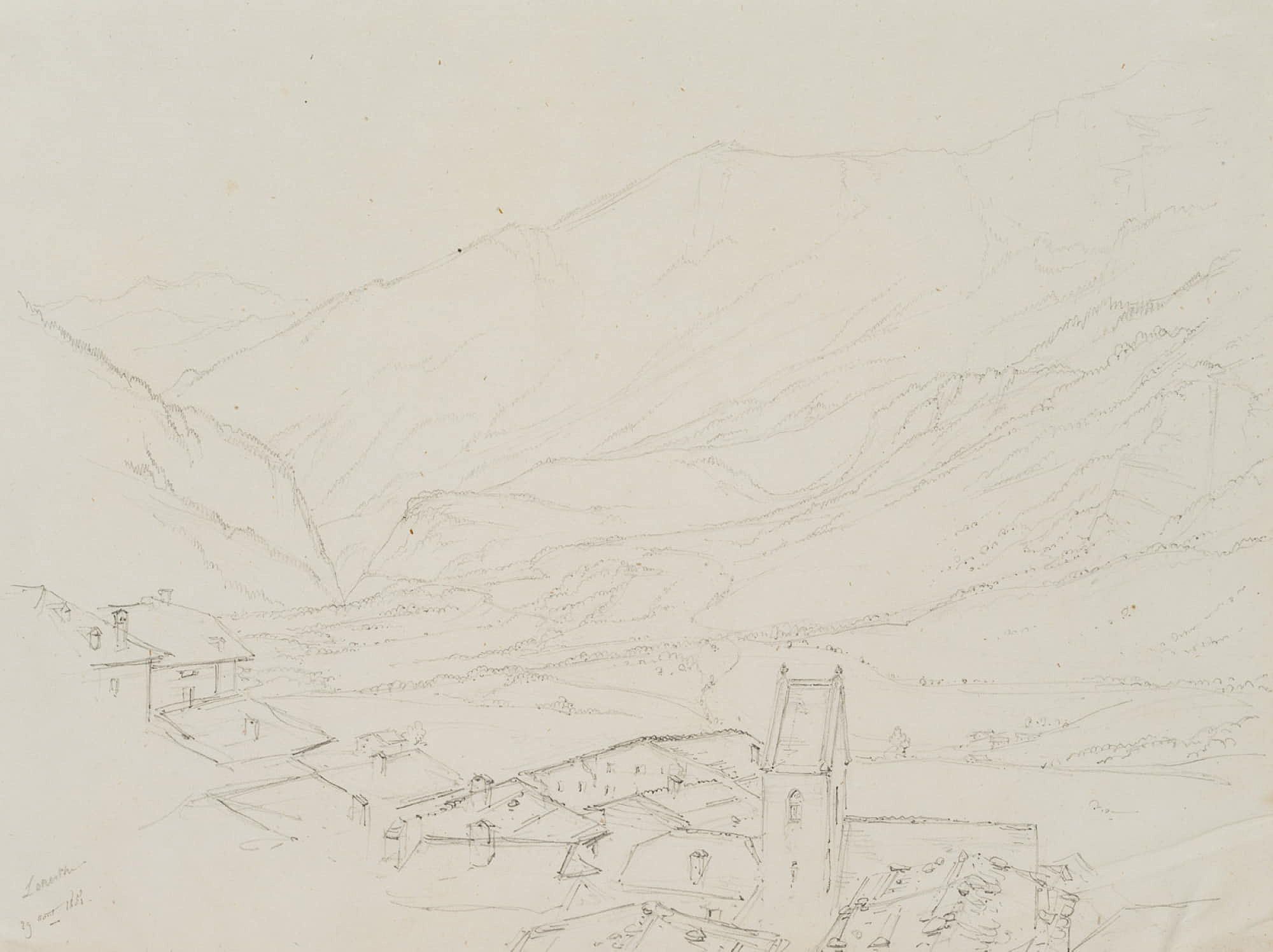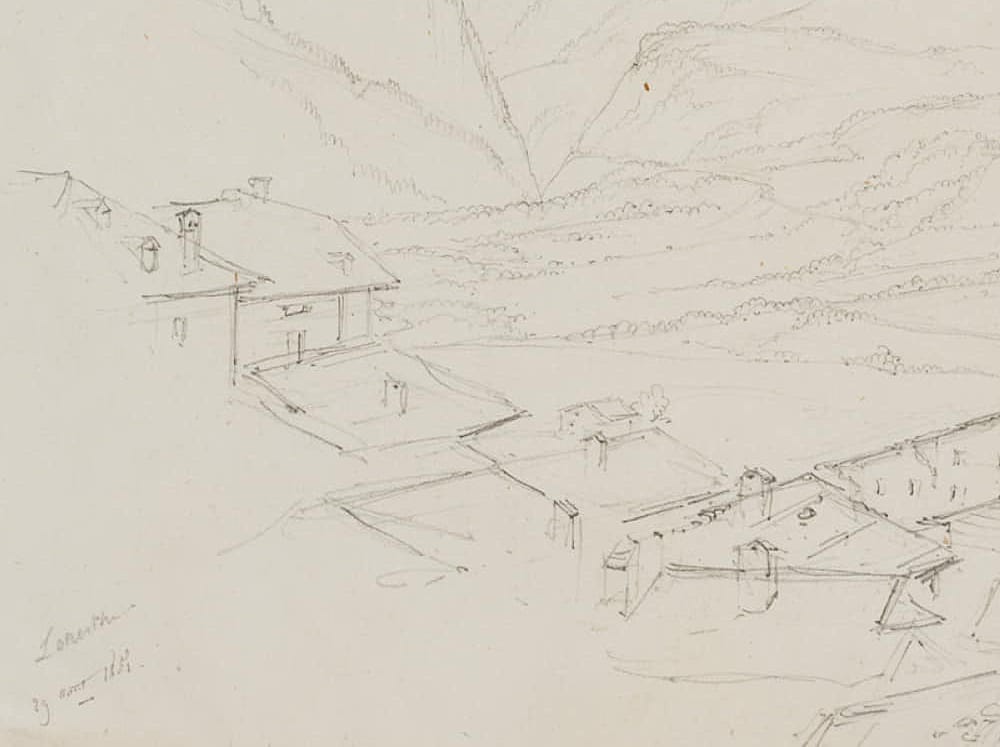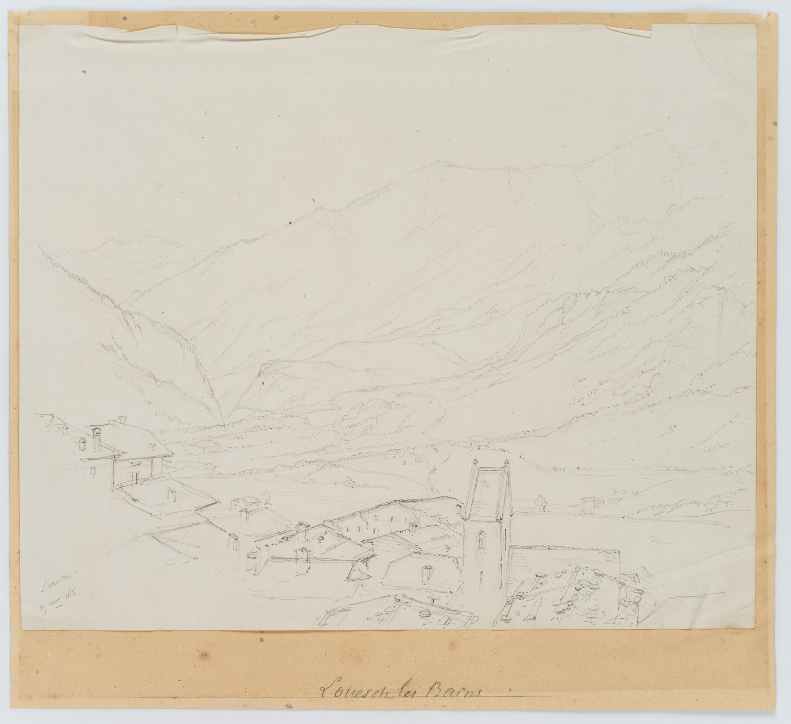 Edmond de Bretenières (1804 Dijon – 1882 ibid.), Leukerbad in the Dala Valley in the Canton of Valais, Loéche, Leigg, Trip to Switzerland, Sketchbook, 1850, Pencil