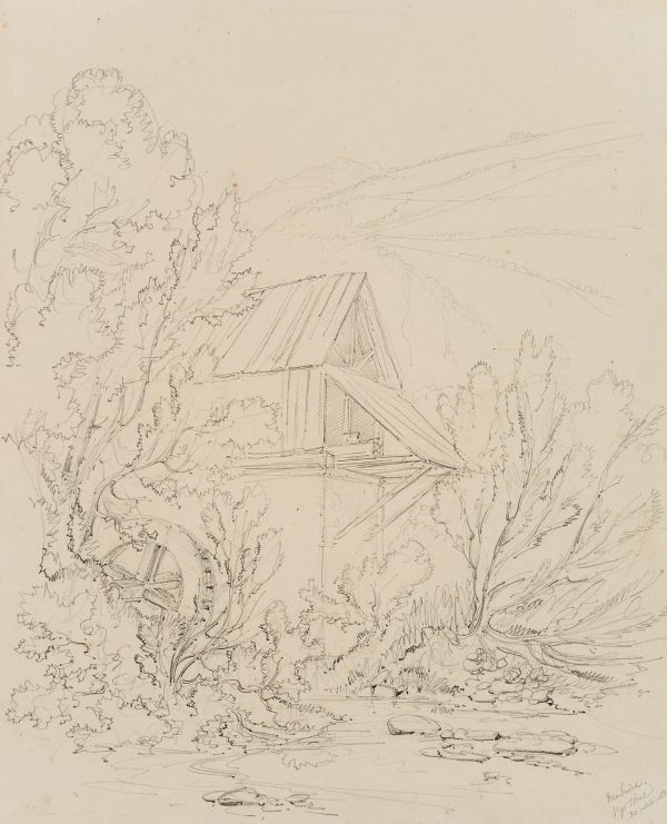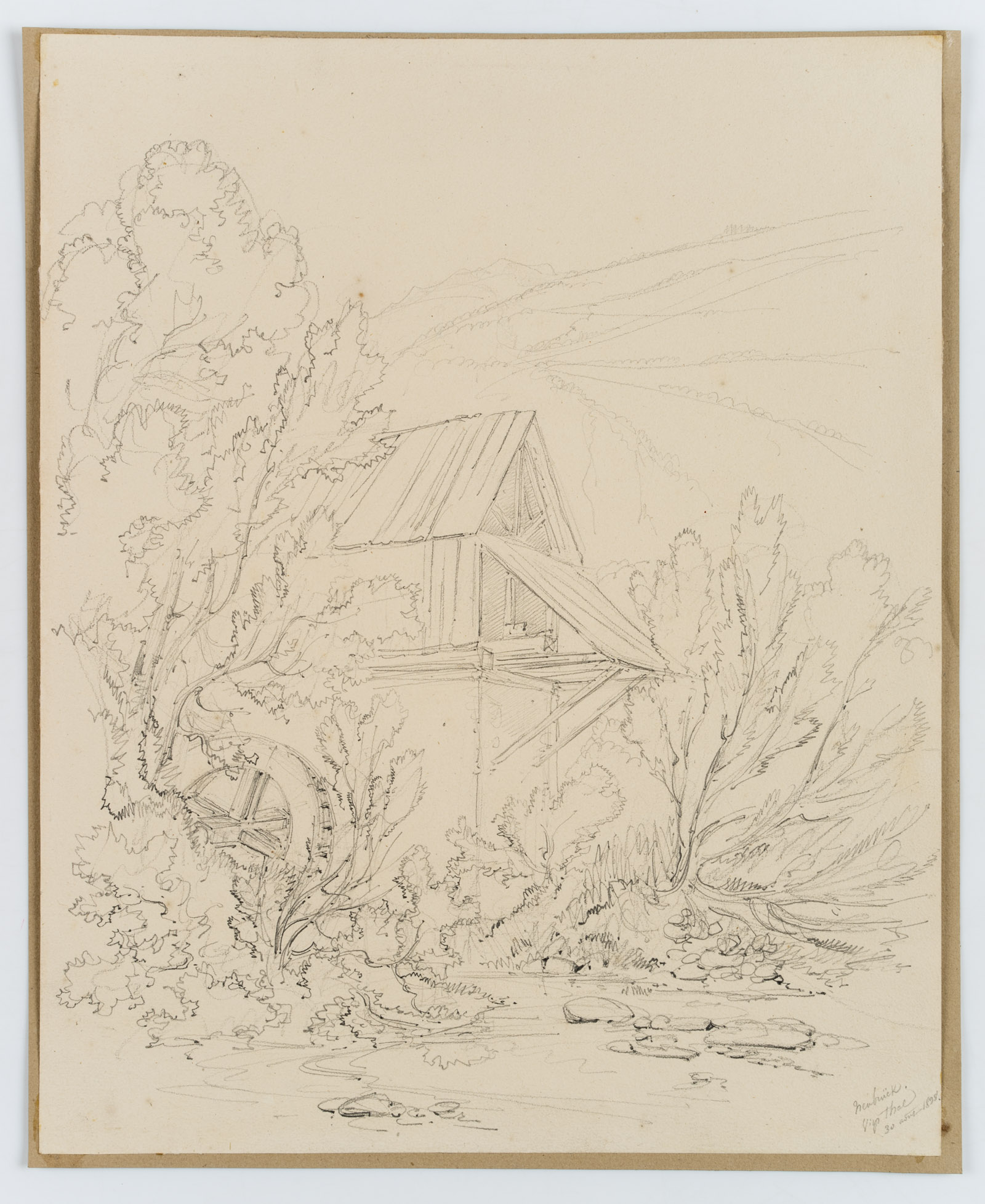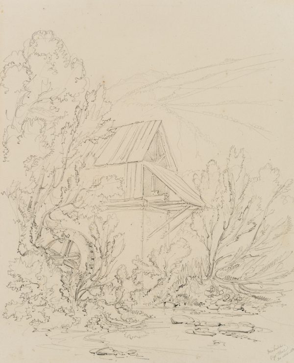 Edmond de Bretenières (1804 Dijon – 1882 ibid.), Mill near Neubrück in the Vispertal in the Canton of Valais, Trip to Switzerland, Sketchbook, 1838, Pencil