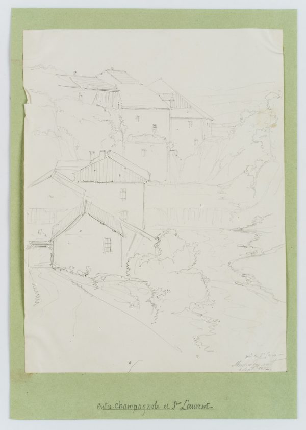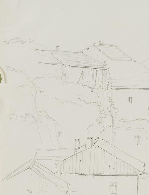 From a scrapbook with travel sketches by the artist. “Esquisses faites par le Baron Edmond de Bretenières feudant les voyages en Suisse” (Sketches made by Baron Edmond de Bretenieres during his travels in Switzerland).