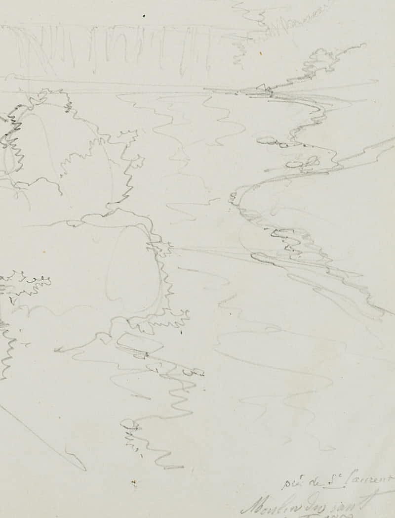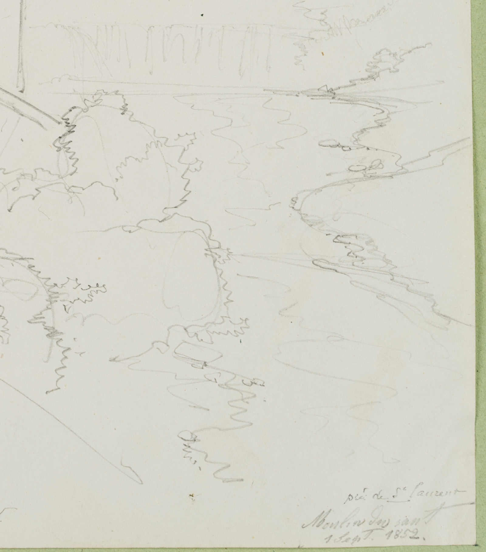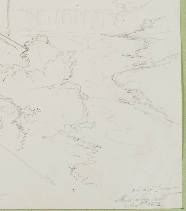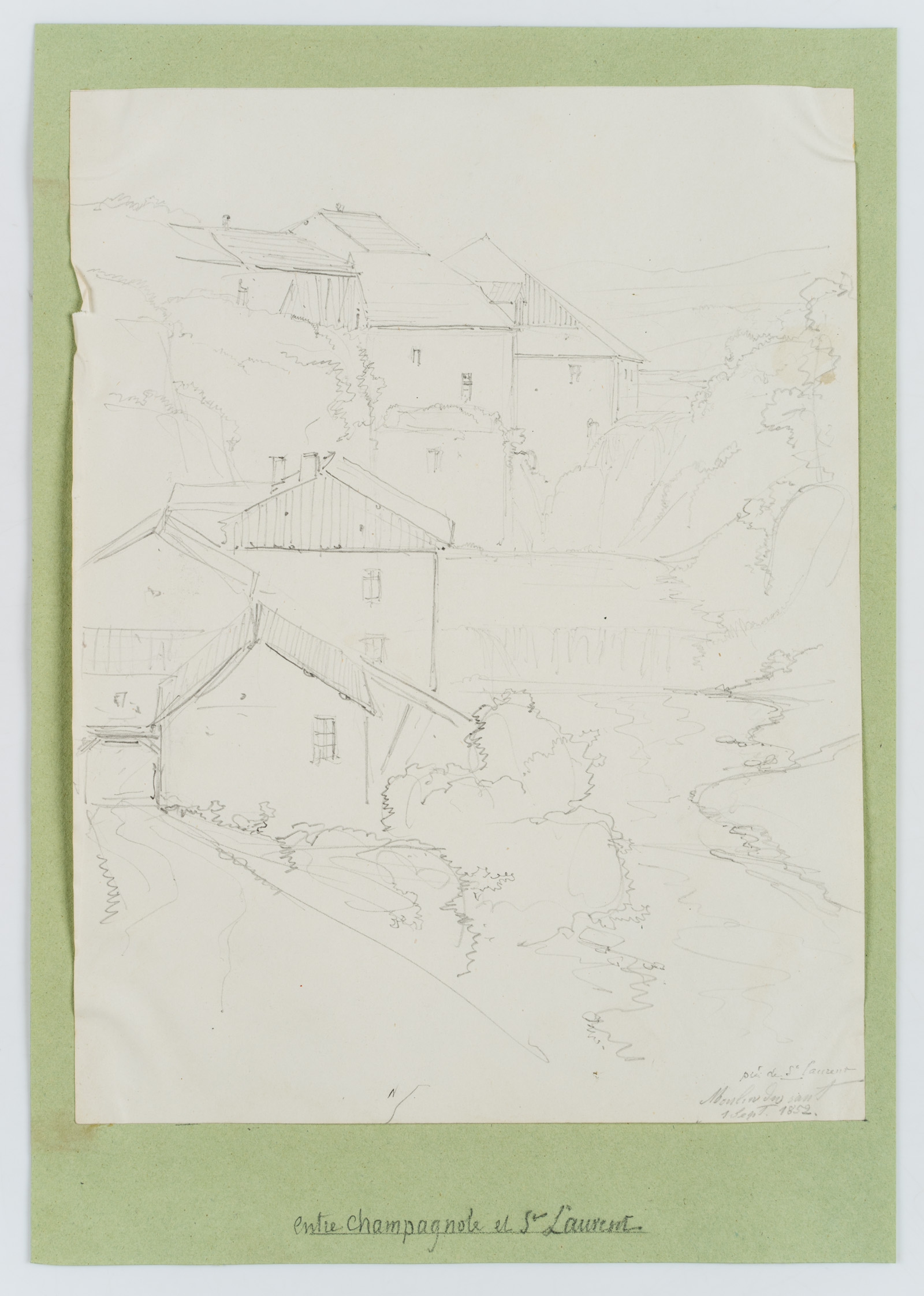 Edmond de Bretenières (1804 Dijon – 1882 ibid.), “Entre Champagnole et St Laurent”, “Moulin des saut[?]”, Trip to Switzerland, Sketchbook, 1852, Pencil