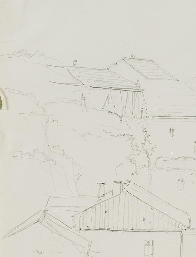 Aus einem Sammelalbum mit Reiseskizzen des Künstlers. “Esquisses faites par le Baron Edmond de Bretenières feudant les voyages en Suisse” (Skizzen, die Baron Edmond de Bretenieres während seiner Reisen in der Schweiz angefertigt hat).