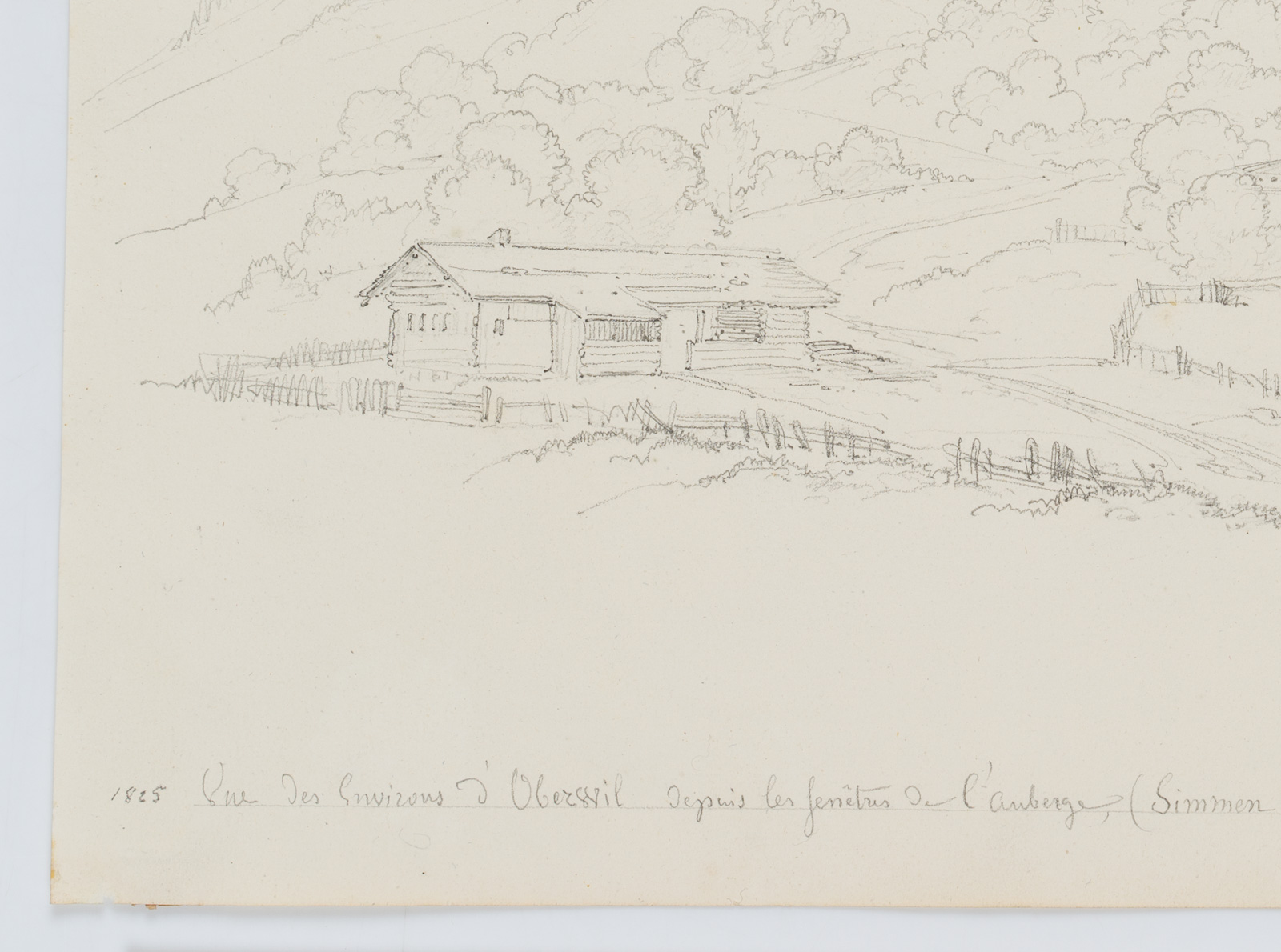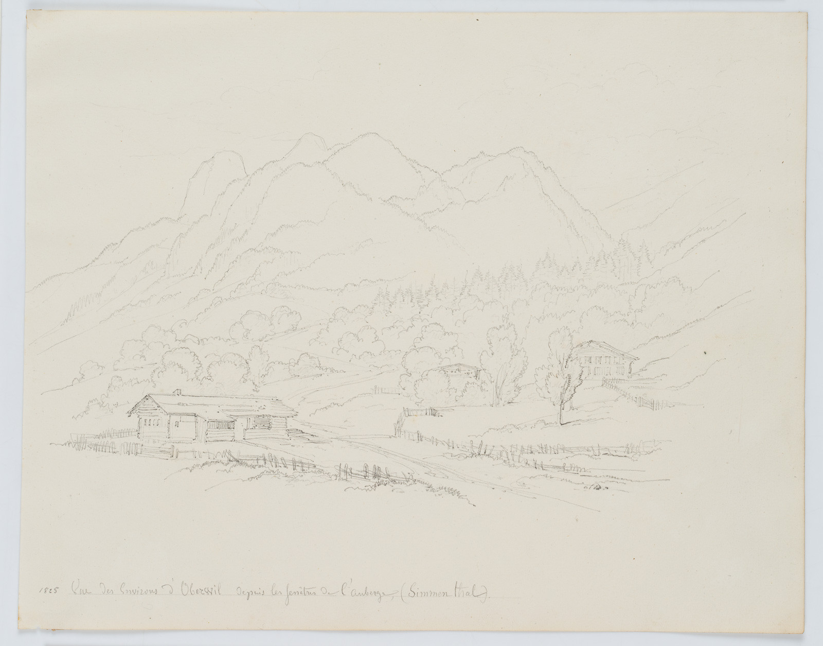 Edmond de Bretenières (1804 Dijon – 1882 ebd.), Blick auf die Umgebung von Oberwil im Simmental in der Schweiz, 1825, Bleistift