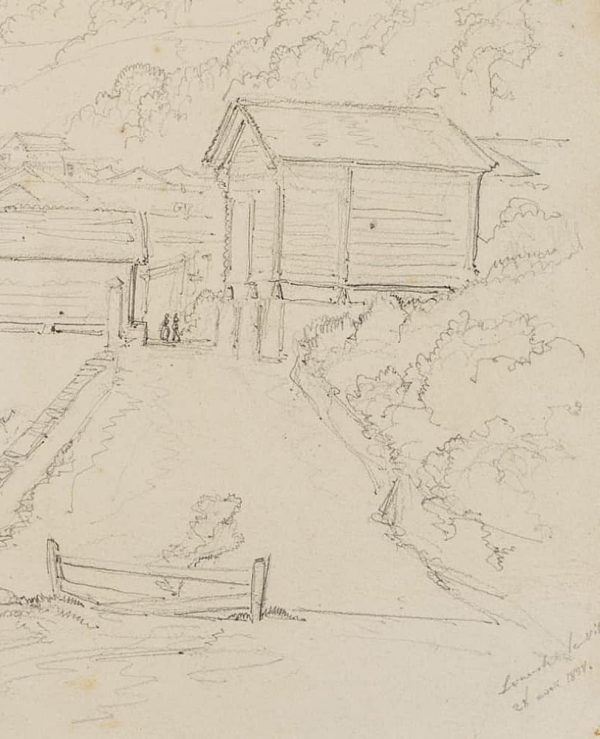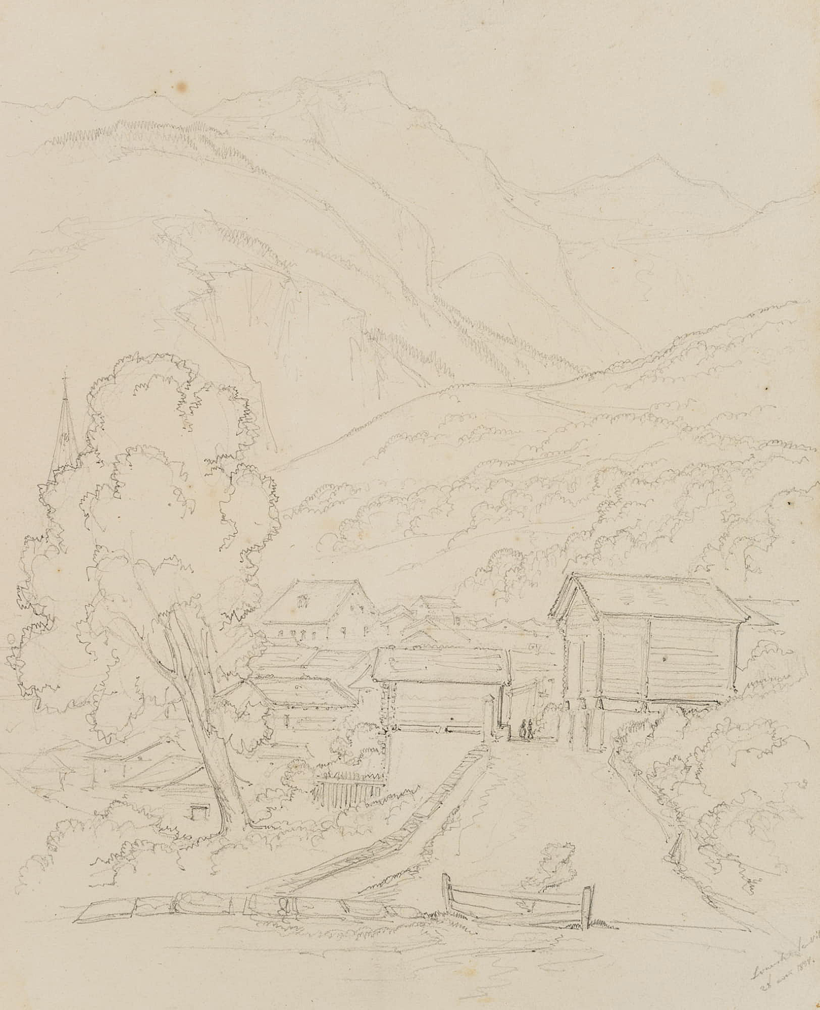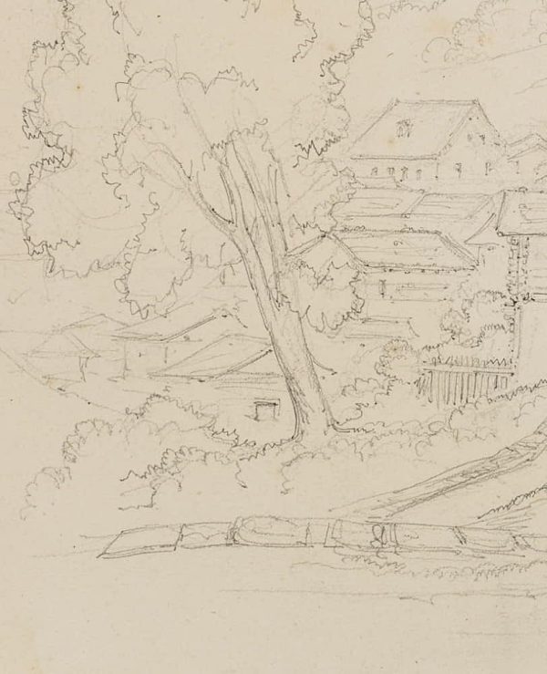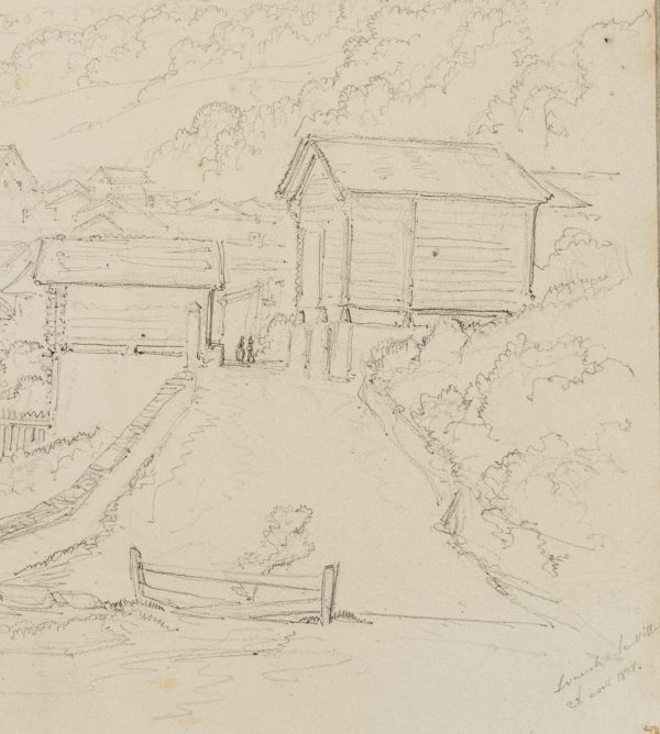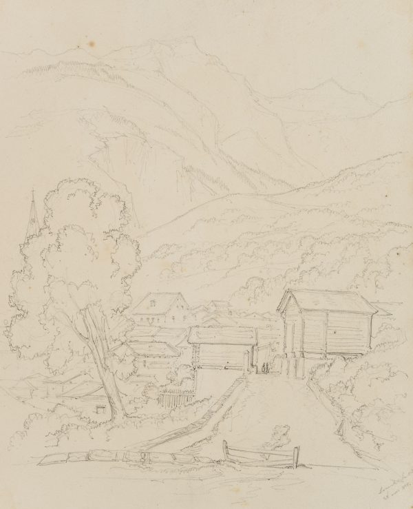 Edmond de Bretenières (1804 Dijon – 1882 ibid.), View on the outskirts of the town of Leuk in the canton of Valais, Loéche, Leigg, Journey to Switzerland, Sketchbook, 1838, Pencil