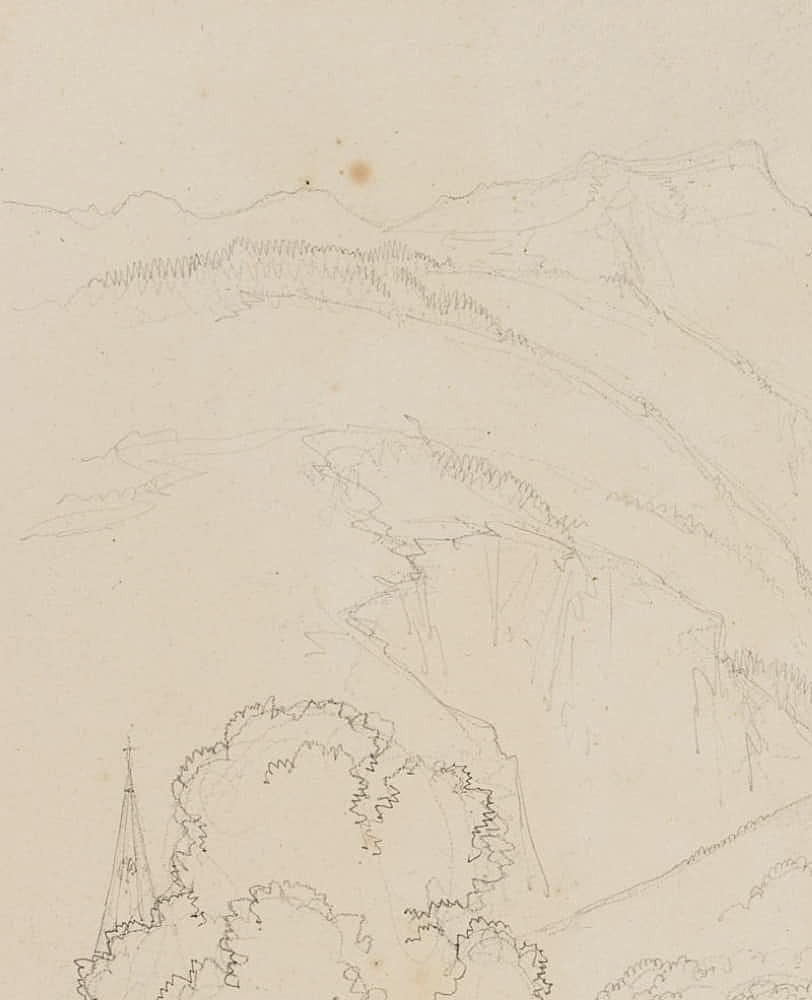 From a scrapbook with travel sketches by the artist. “Esquisses faites par le Baron Edmond de Bretenières feudant les voyages en Suisse” (Sketches made by Baron Edmond de Bretenieres during his travels in Switzerland).