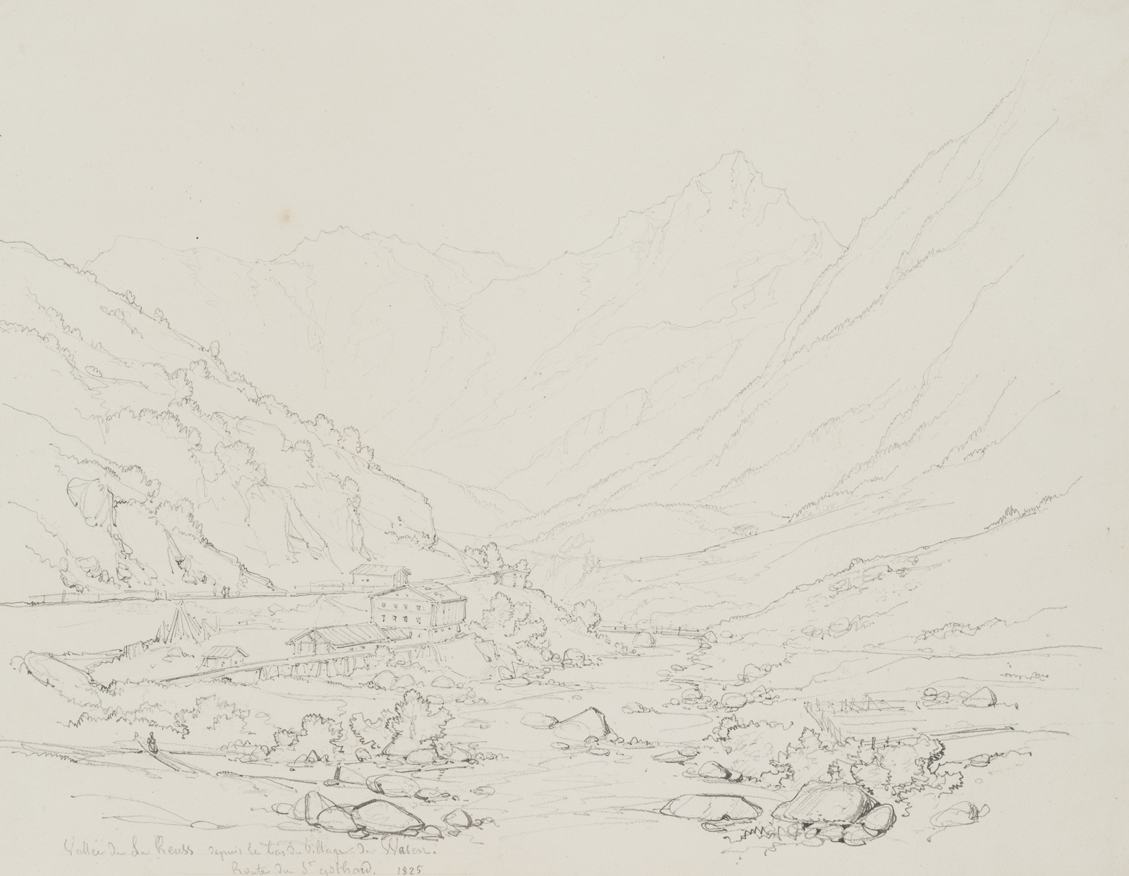 Edmond de Bretenières (1804 Dijon – 1882 ibid.), View of the Reuss valley, below Wassen, Switzerland, 1825, Pencil