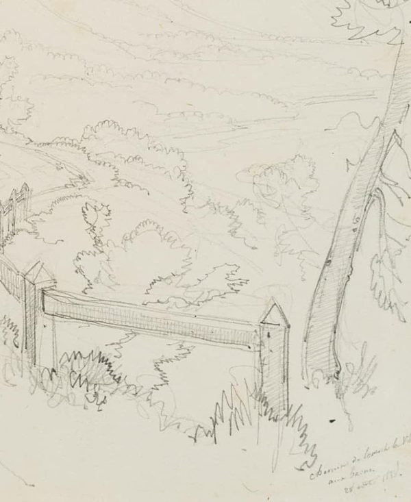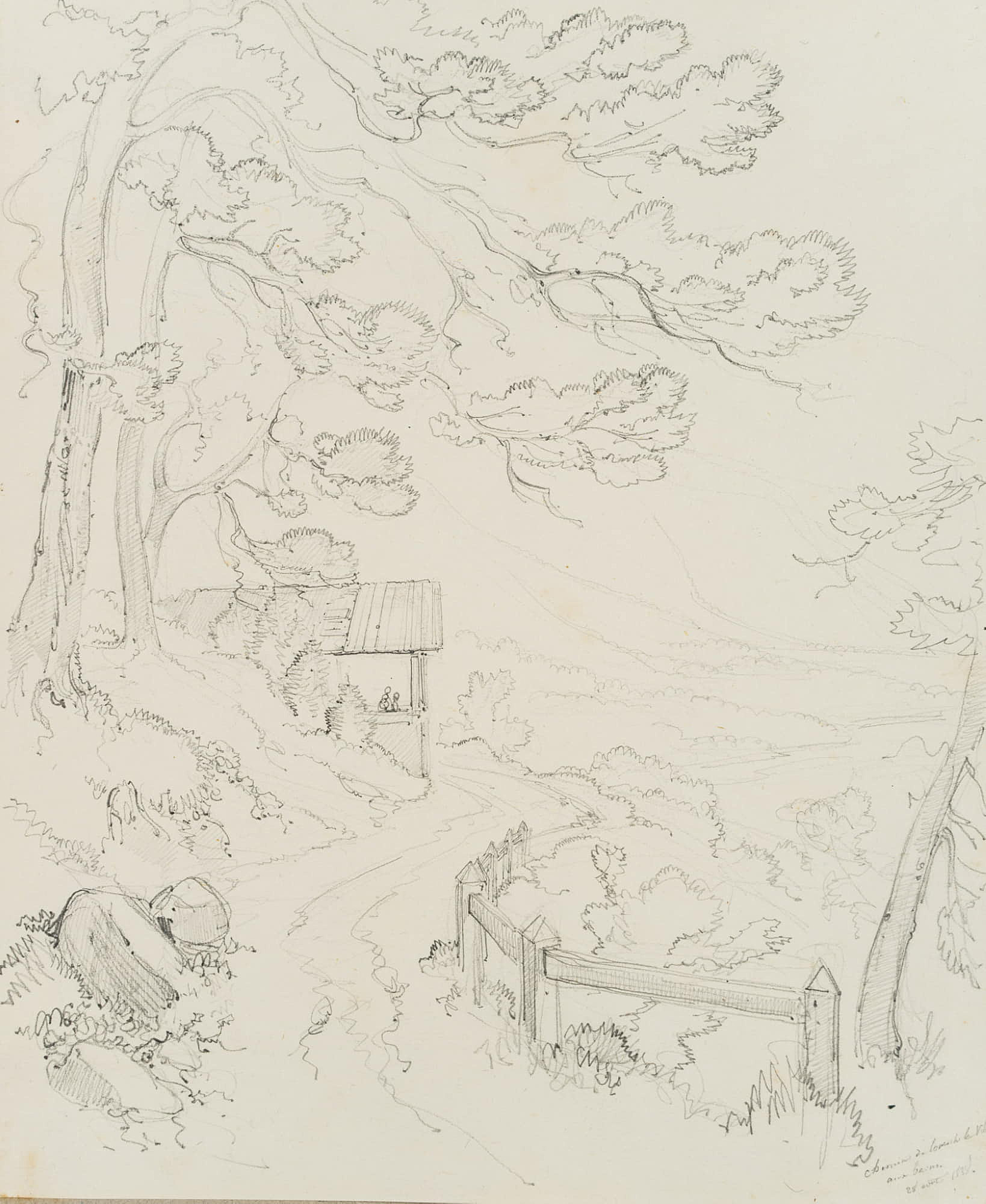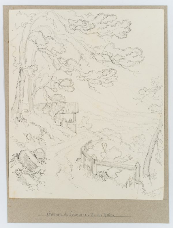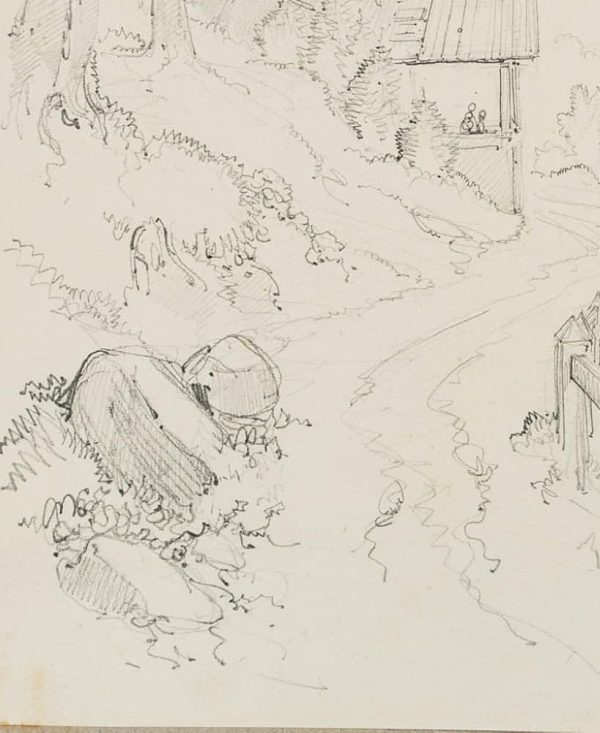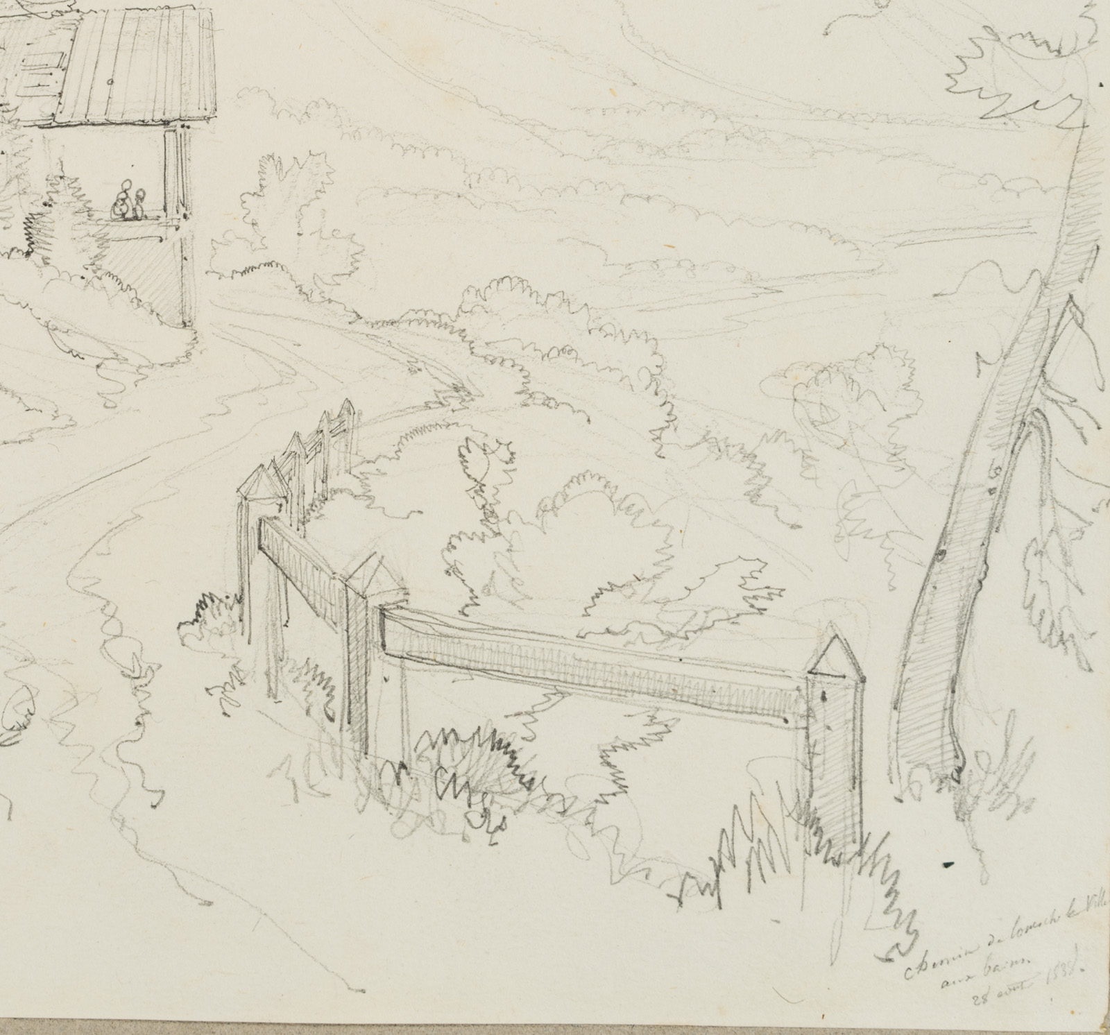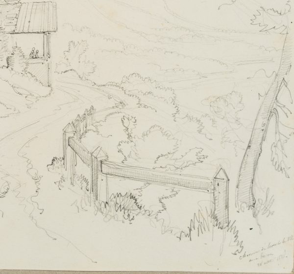 From a scrapbook with travel sketches by the artist. “Esquisses faites par le Baron Edmond de Bretenières feudant les voyages en Suisse” (Sketches made by Baron Edmond de Bretenieres during his travels in Switzerland).
