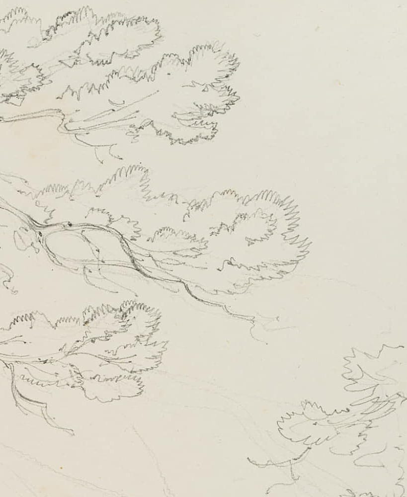Edmond de Bretenières (1804 Dijon – 1882 ibid.), Rhone Valley, seen from the road to Leukerbad in the canton of Valais, Loéche-les-Bains, Leiggerbad, “Chemin de Louesch la ville aux bains”, Journey to Switzerland, Sketchbook, 1838, Pencil