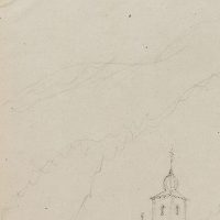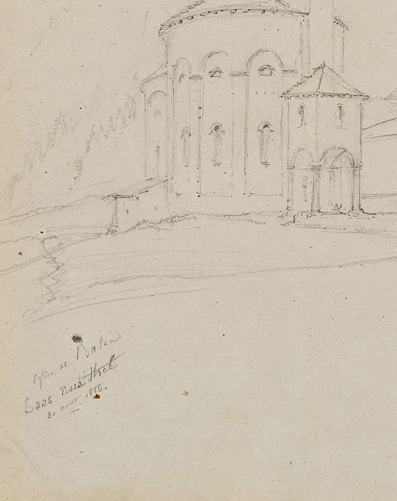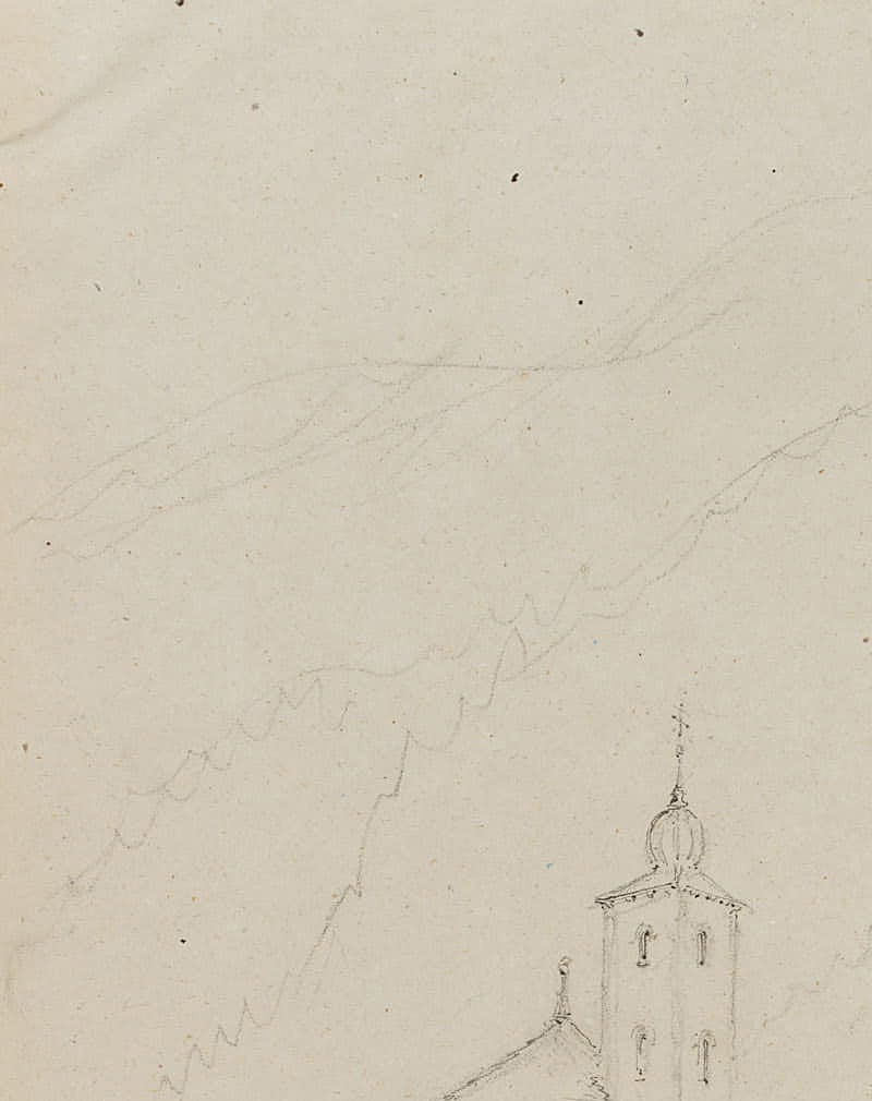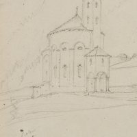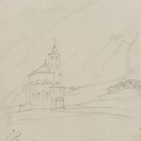 Edmond de Bretenières (1804 Dijon – 1882 ibid.), Round Church in Saas-Balen in the Saas Valley in the Canton of Valais, Trip to Switzerland, Sketchbook, 1856, Pencil