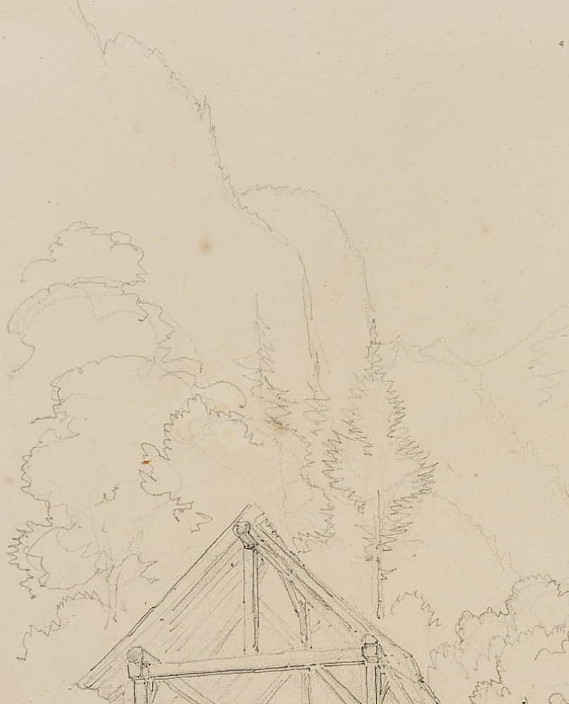 Aus einem Sammelalbum mit Reiseskizzen des Künstlers. “Esquisses faites par le Baron Edmond de Bretenières feudant les voyages en Suisse” (Skizzen, die Baron Edmond de Bretenieres während seiner Reisen in der Schweiz angefertigt hat).