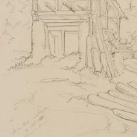 - Technik: Bleistift auf Papier, montiert auf Papier