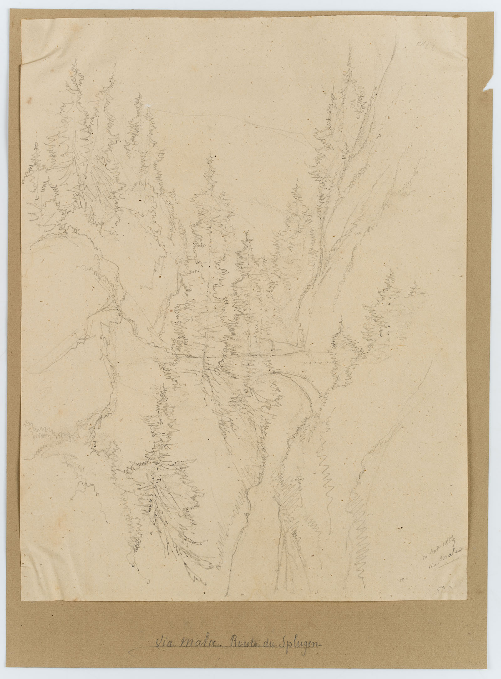 Edmond de Bretenières (1804 Dijon – 1882 ibid.), Bridge over a gorge near Splügen in the Viamala region in the canton of Graubünden, journey to Switzerland, sketchbook, 1859, Pencil