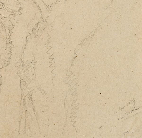 From a scrapbook with travel sketches by the artist. “Esquisses faites par le Baron Edmond de Bretenières feudant les voyages en Suisse” (Sketches made by Baron Edmond de Bretenieres during his travels in Switzerland).