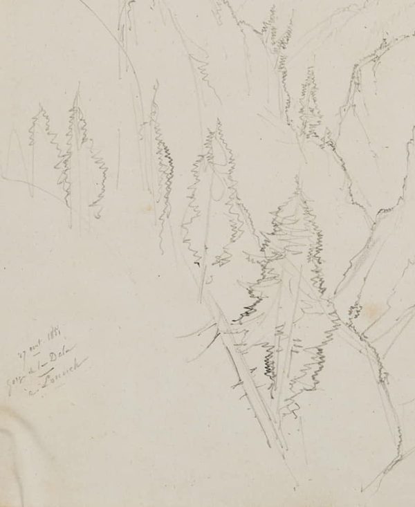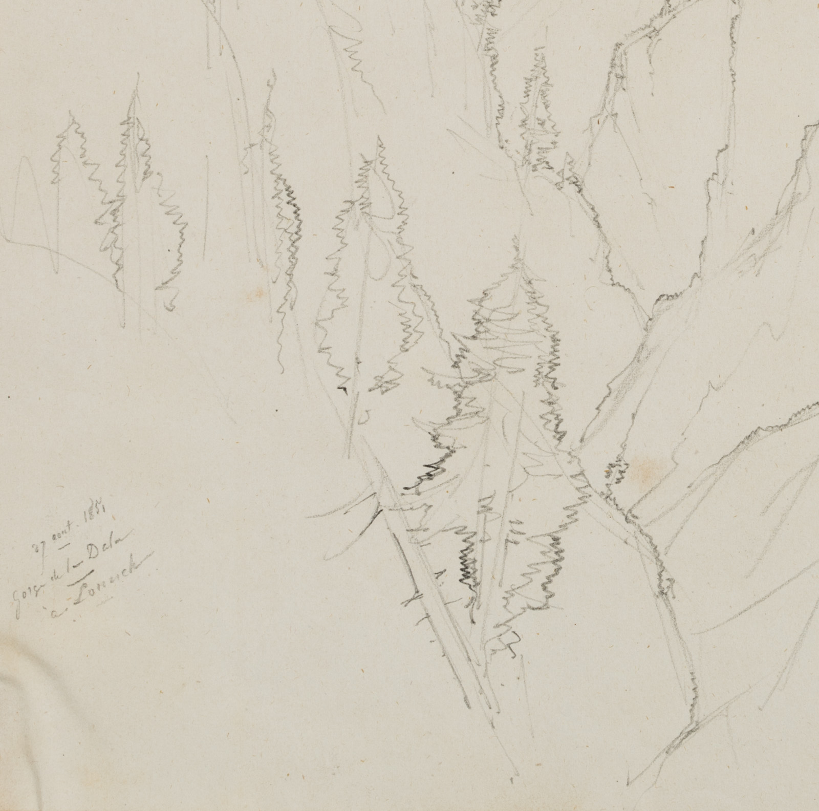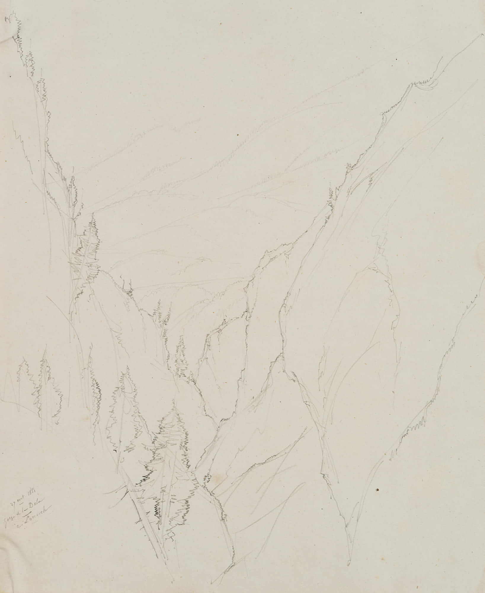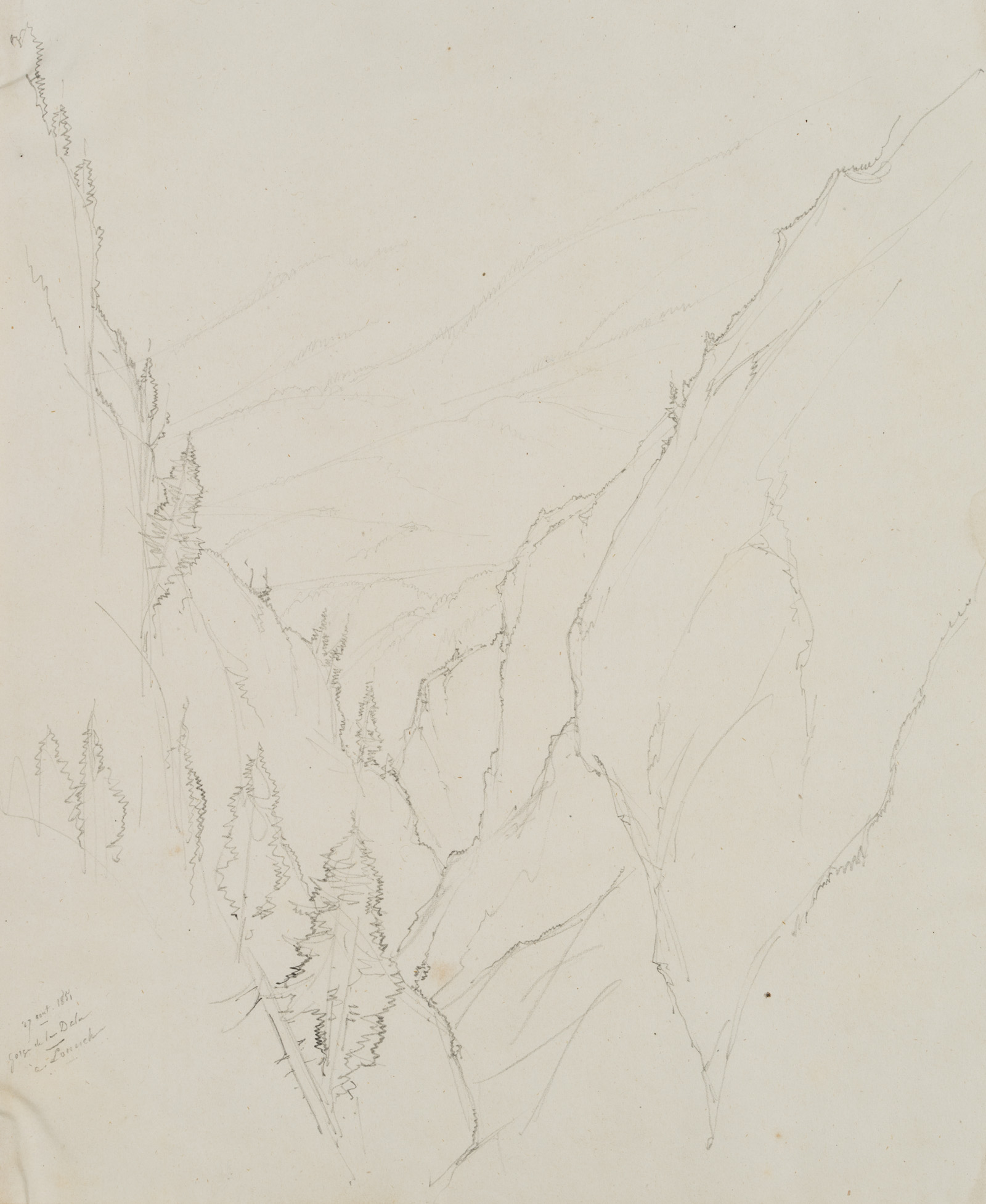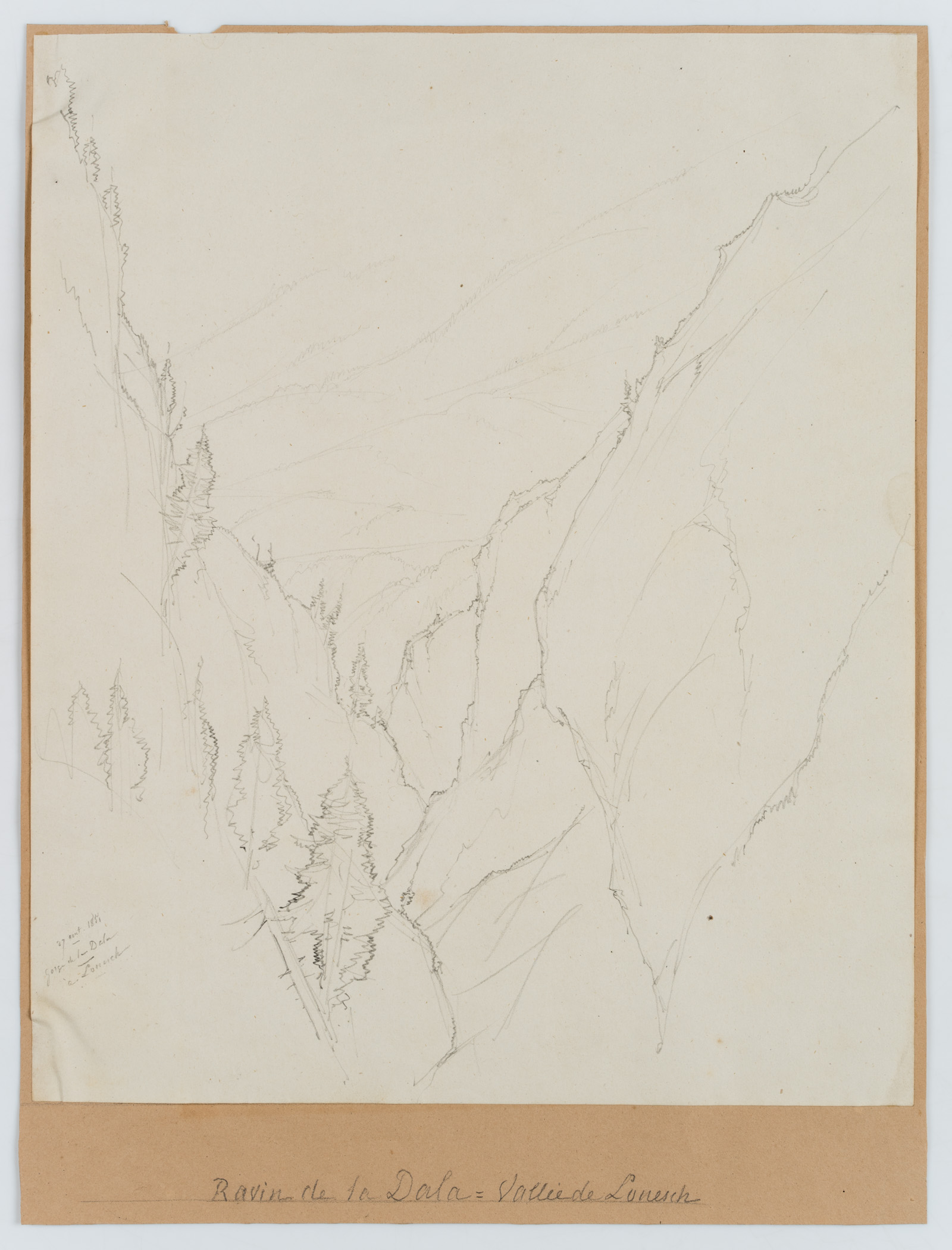 Edmond de Bretenières (1804 Dijon – 1882 ibid.), Gorge in the Dalatal near Leuk in the canton of Valais, Loéche, Leigg, Trip to Switzerland, Sketchbook, 1850, Pencil