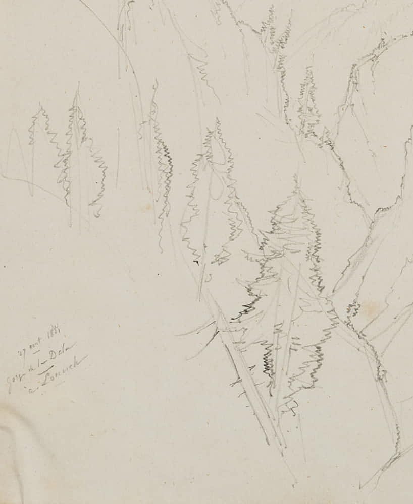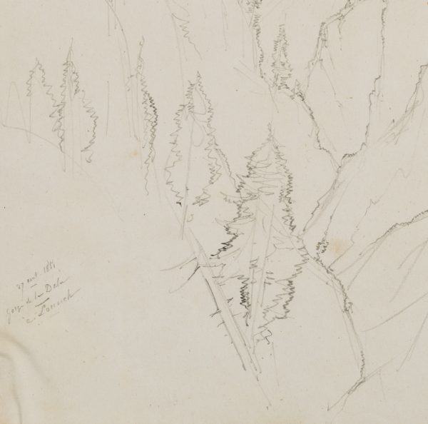 From a scrapbook with travel sketches by the artist. “Esquisses faites par le Baron Edmond de Bretenières feudant les voyages en Suisse” (Sketches made by Baron Edmond de Bretenieres during his travels in Switzerland).