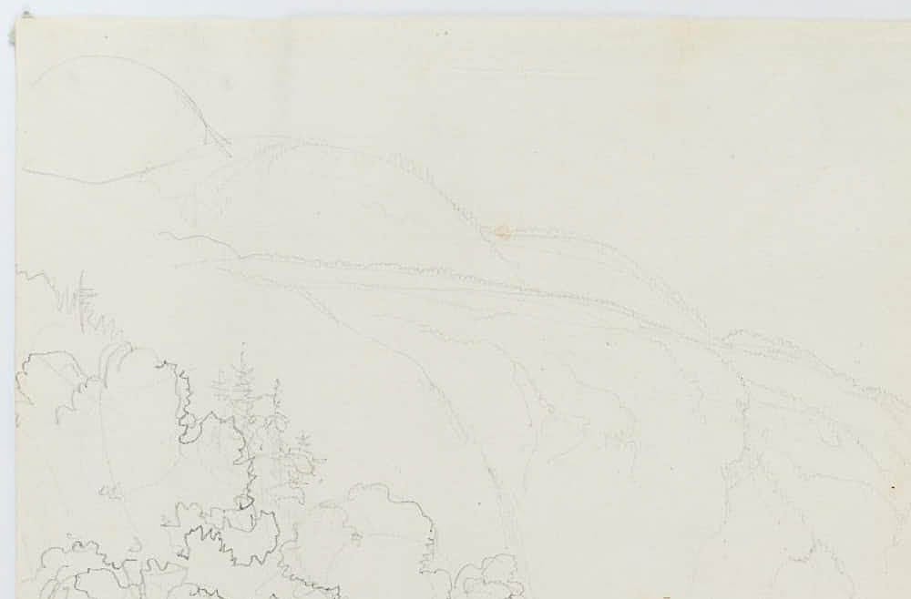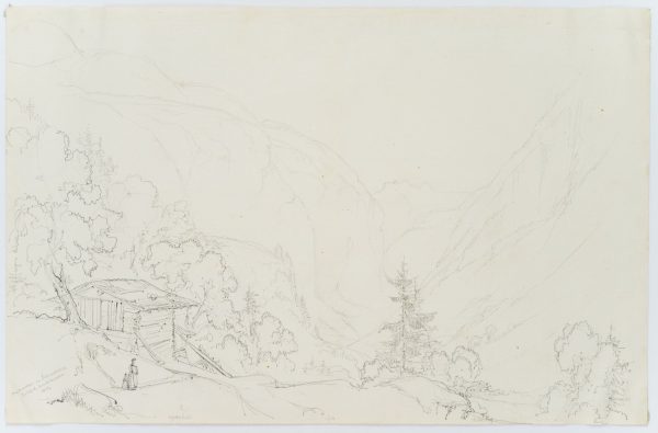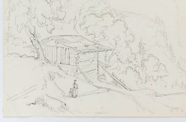 Aus einem Sammelalbum mit Reiseskizzen des Künstlers. “Esquisses faites par le Baron Edmond de Bretenières feudant les voyages en Suisse” (Skizzen, die Baron Edmond de Bretenieres während seiner Reisen in der Schweiz angefertigt hat). | Wasserzeichen: “D&C BLAUW”