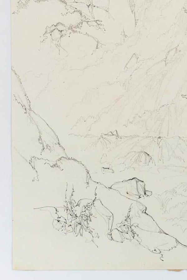 From a scrapbook with travel sketches by the artist. “Esquisses faites par le Baron Edmond de Bretenières feudant les voyages en Suisse” (Sketches made by Baron Edmond de Bretenieres during his travels in Switzerland). | Watermark: Wappen und “RIVES”