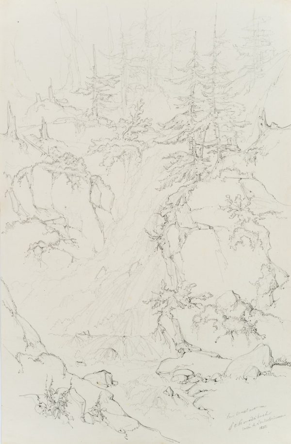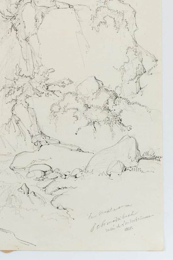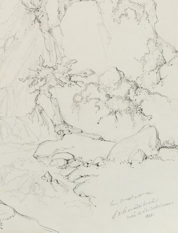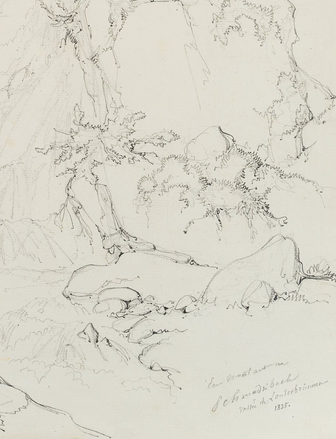 Edmond de Bretenières (1804 Dijon – 1882 ibid.), At the Schmadribach Falls in the Lauterbrunnen Valley, Journey to Switzerland, Sketchbook, 1835, Pencil