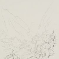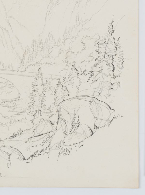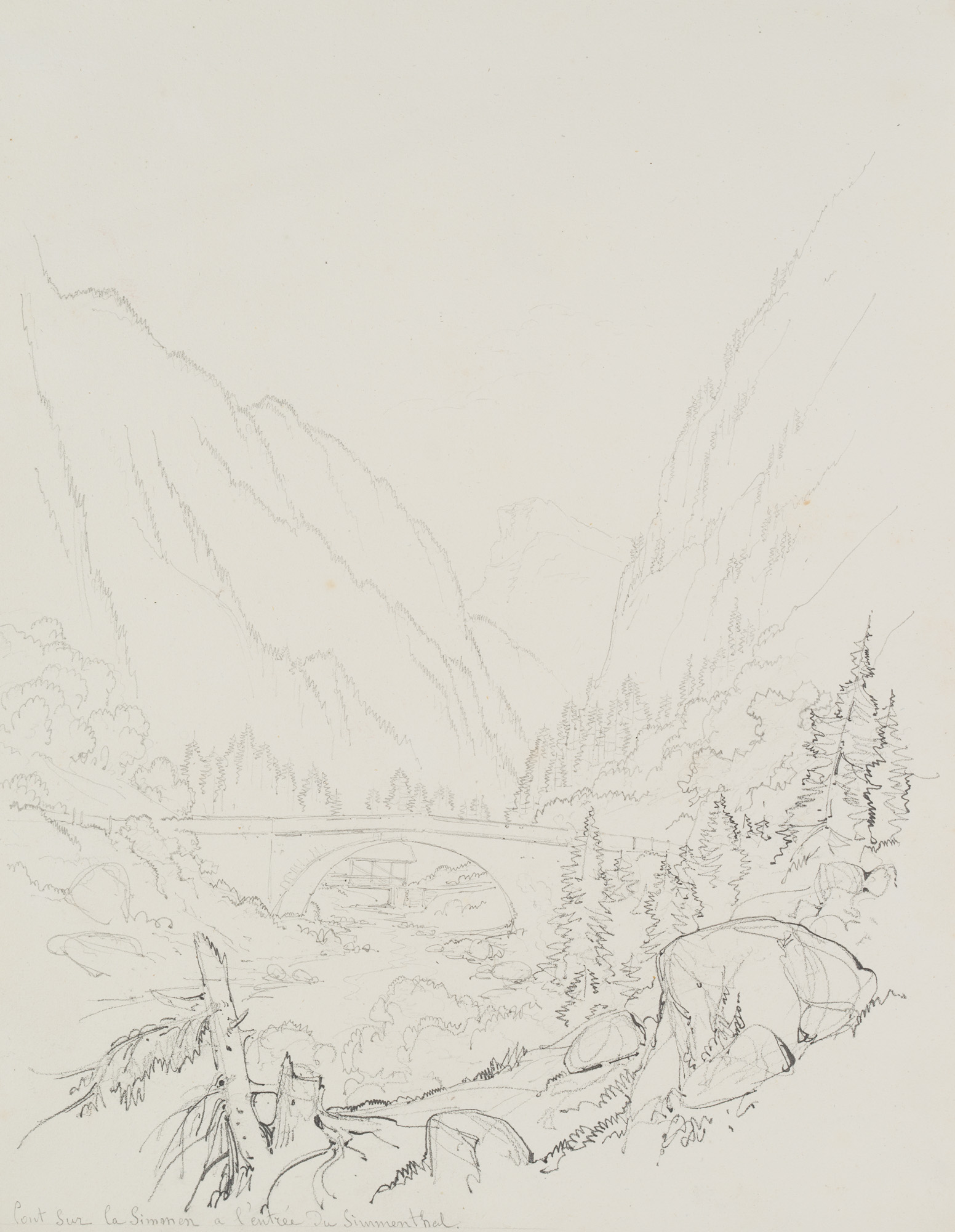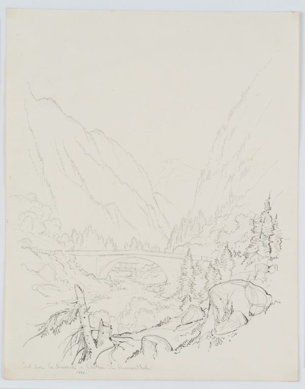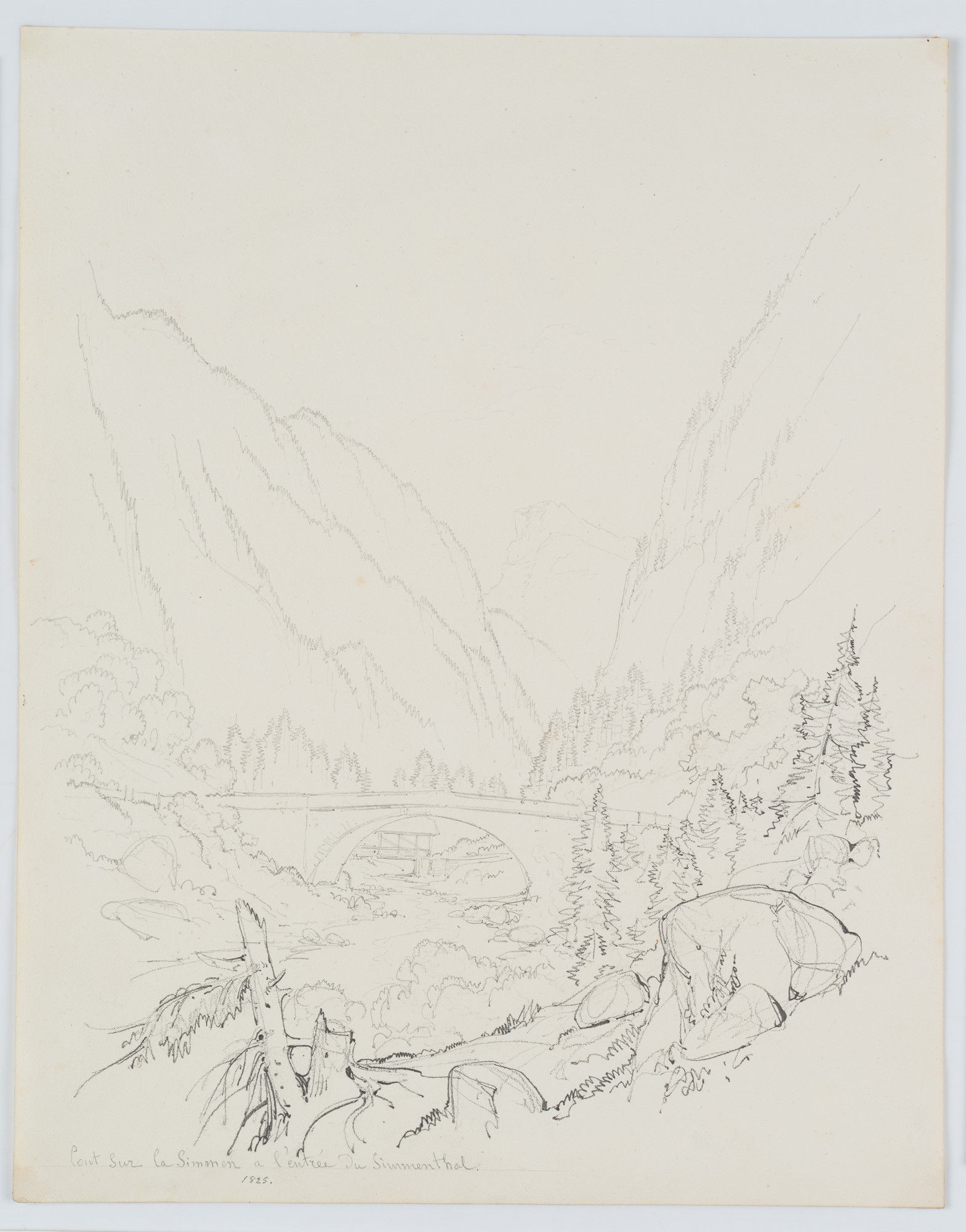 Edmond de Bretenières (1804 Dijon – 1882 ibid.), View of the Simmen Bridge Wimmis over the Simme in the Simmental in Switzerland, 1825, Pencil