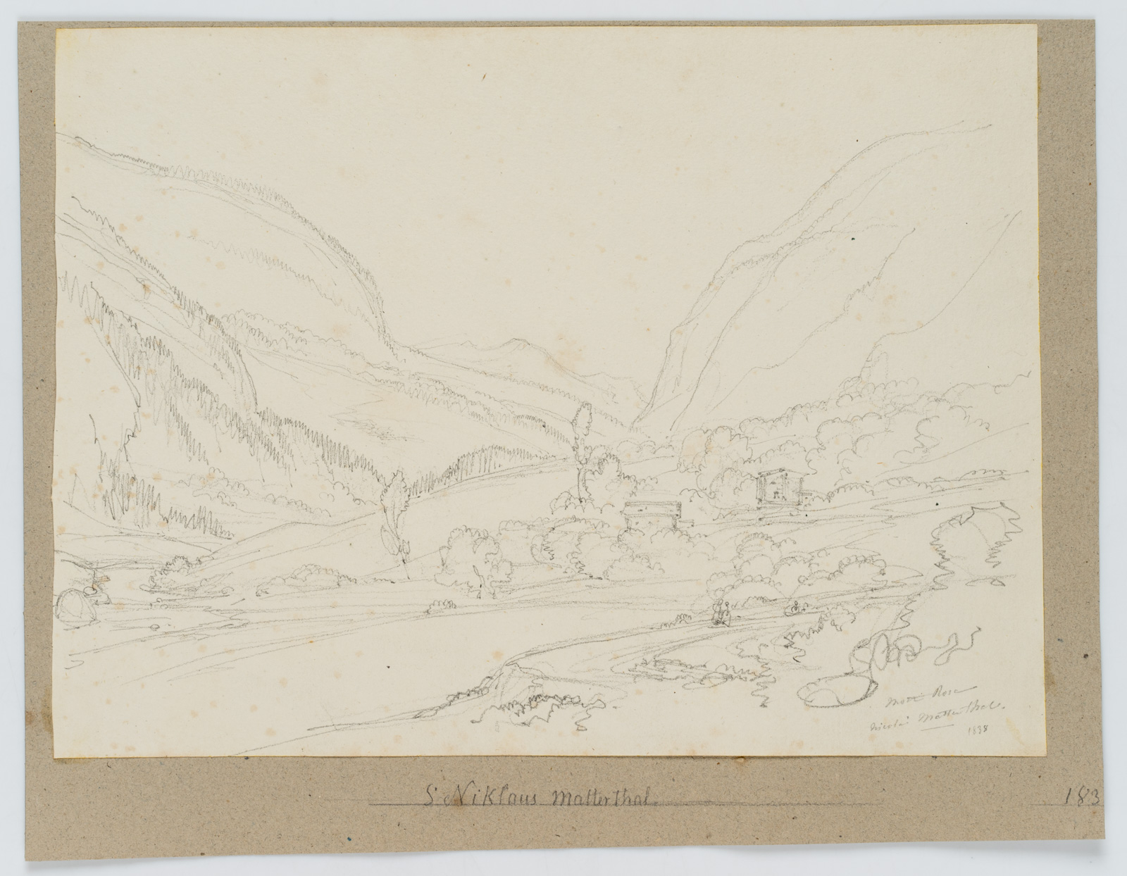 Edmond de Bretenières (1804 Dijon – 1882 ebd.), St.Niklaus im Mattertal im Kanton Wallis, Reise in die Schweiz, Skizzenbuch, 1838, Bleistift