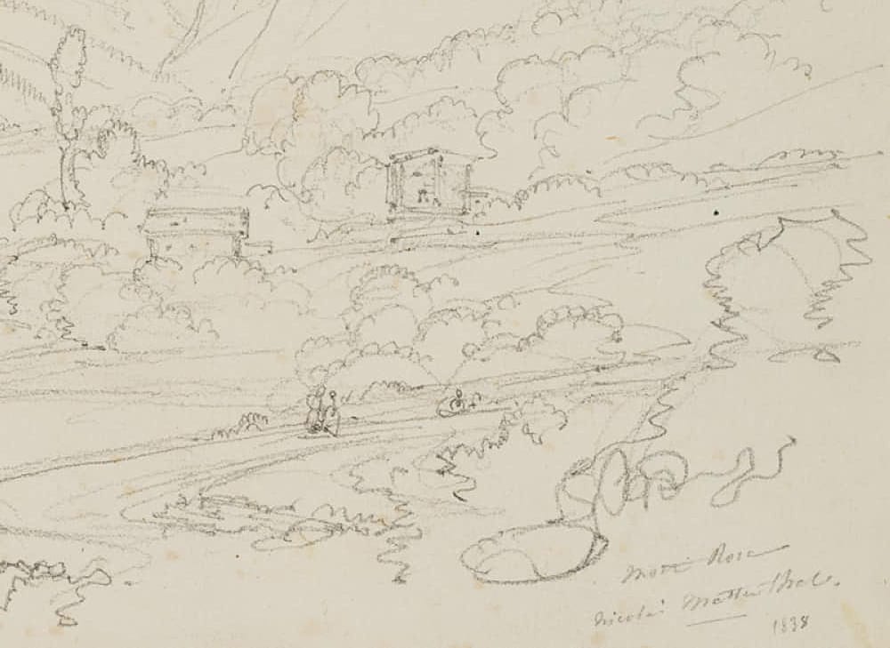 Aus einem Sammelalbum mit Reiseskizzen des Künstlers. “Esquisses faites par le Baron Edmond de Bretenières feudant les voyages en Suisse” (Skizzen, die Baron Edmond de Bretenieres während seiner Reisen in der Schweiz angefertigt hat).