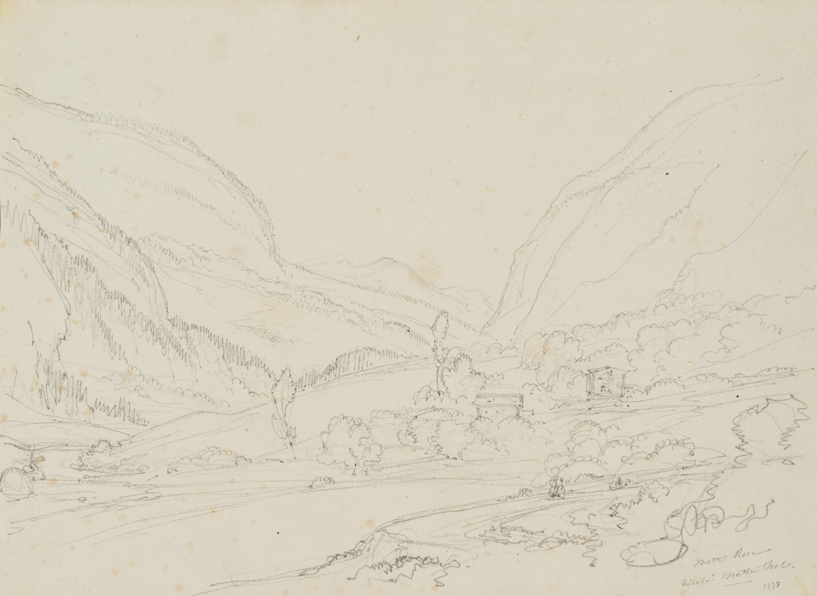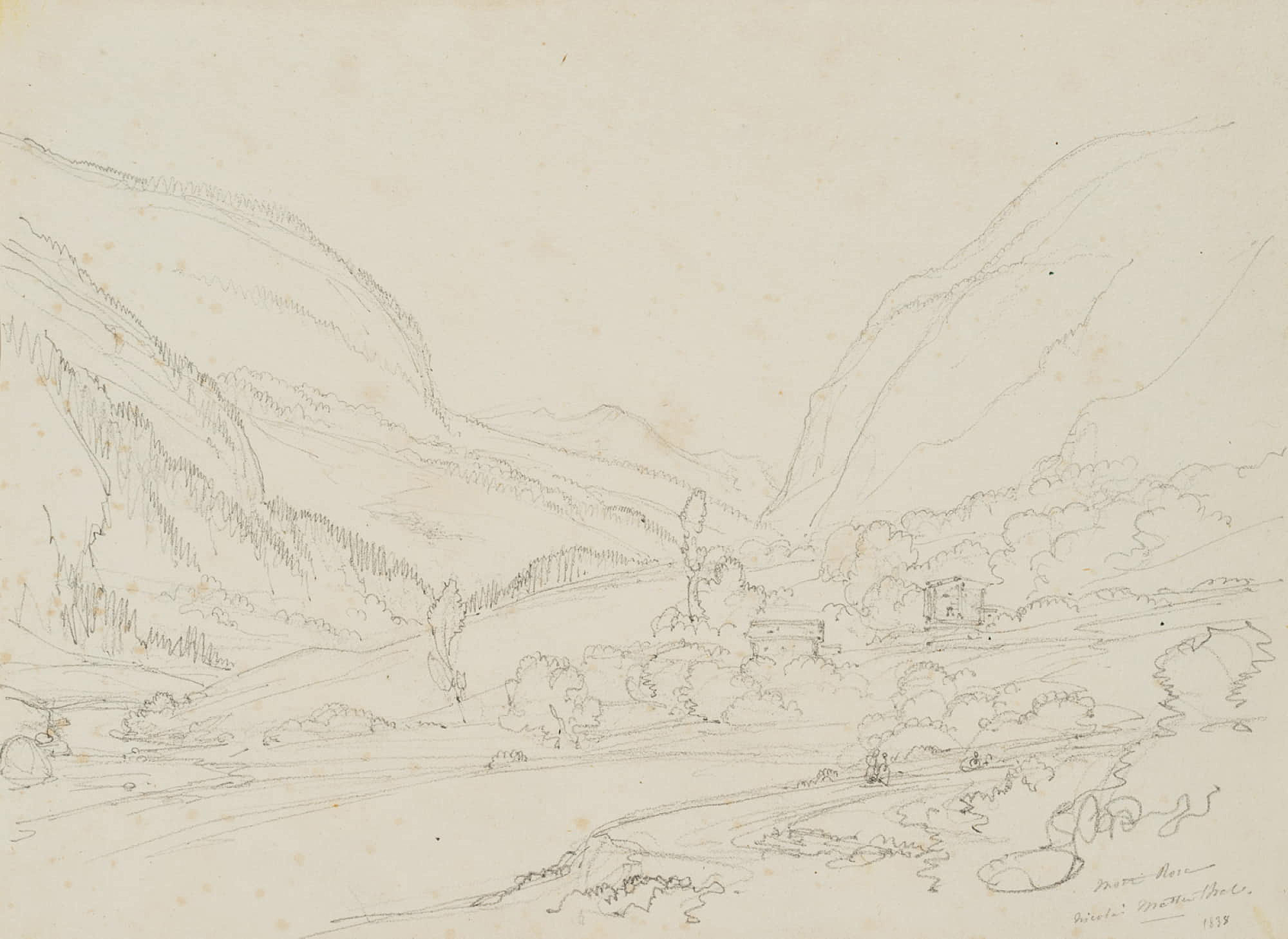 Edmond de Bretenières (1804 Dijon – 1882 ibid.), St.Niklaus in the Matter Valley in the Canton of Valais, Trip to Switzerland, Sketchbook, 1838, Pencil