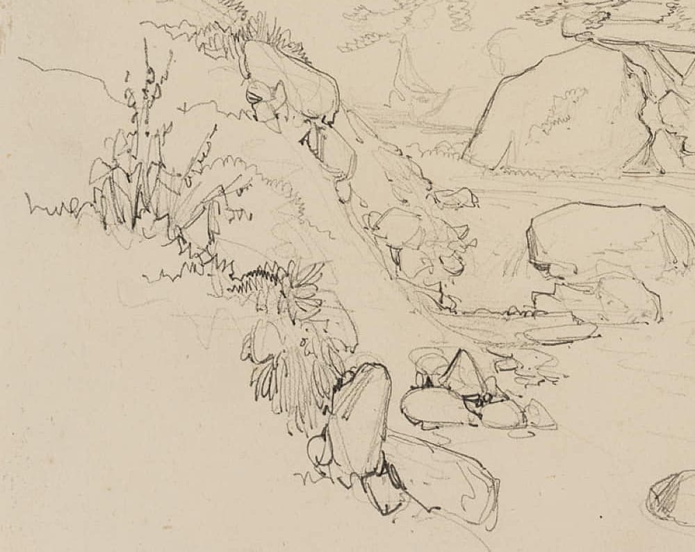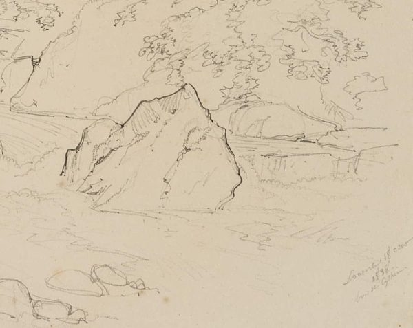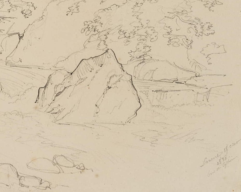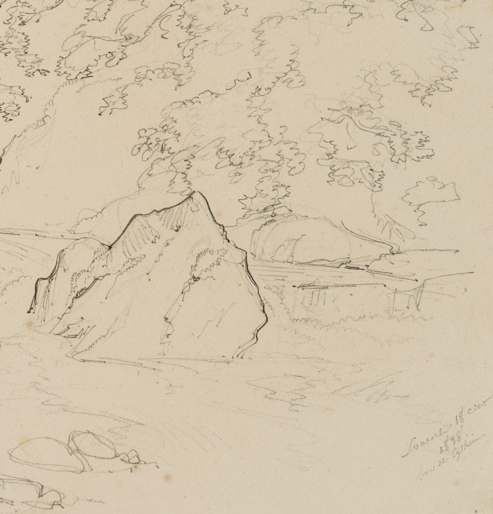 Aus einem Sammelalbum mit Reiseskizzen des Künstlers. “Esquisses faites par le Baron Edmond de Bretenières feudant les voyages en Suisse” (Skizzen, die Baron Edmond de Bretenieres während seiner Reisen in der Schweiz angefertigt hat).