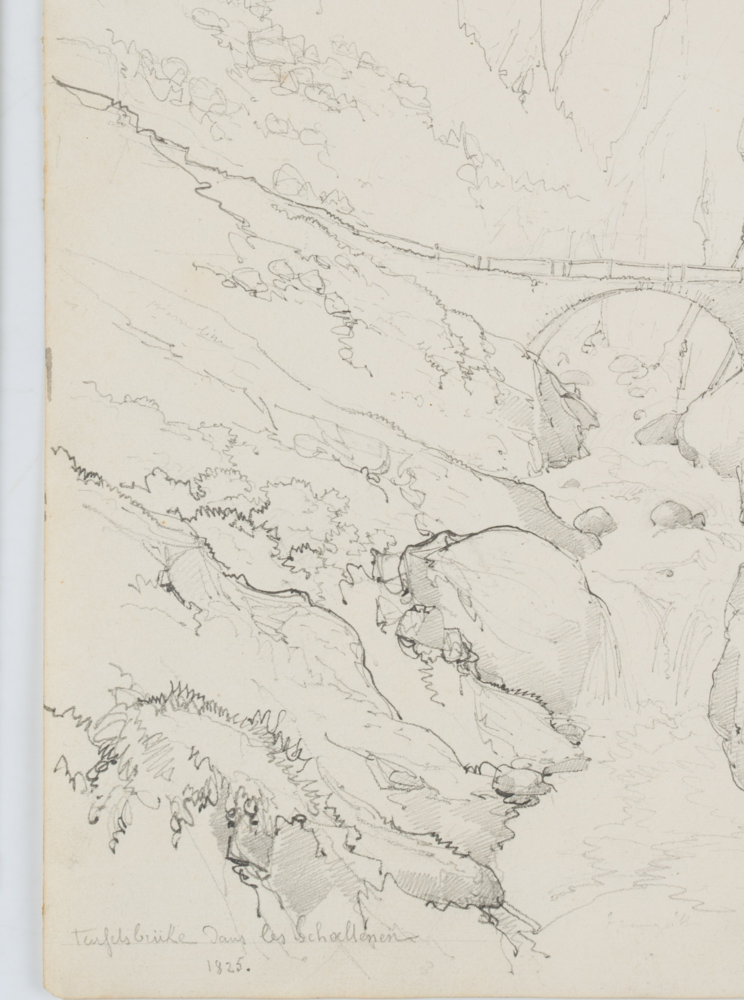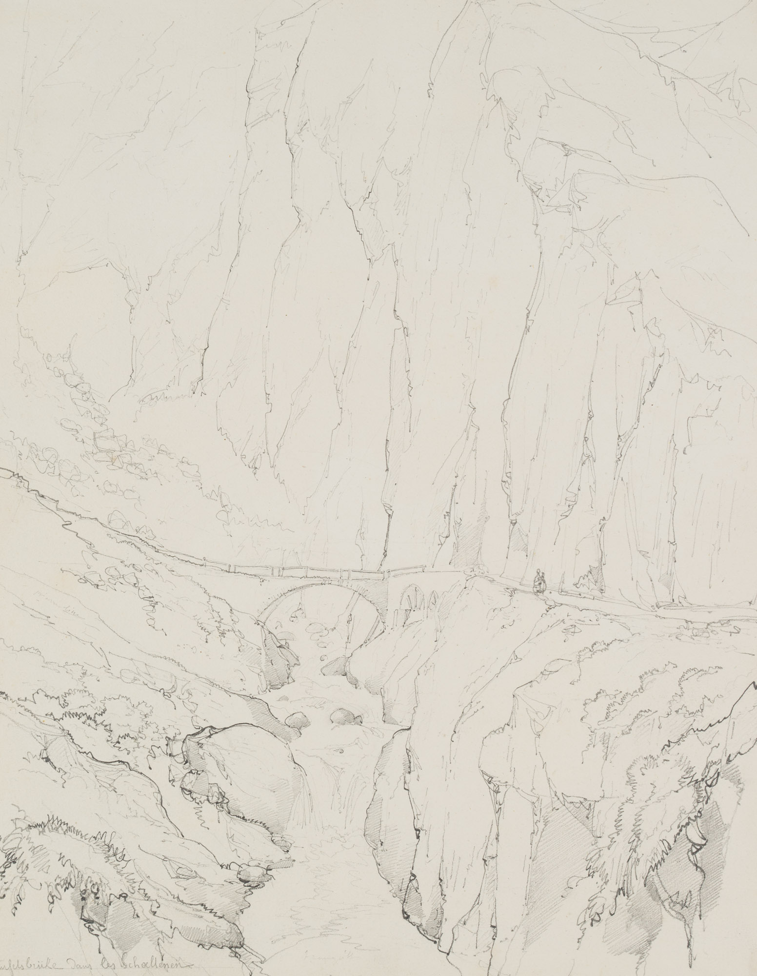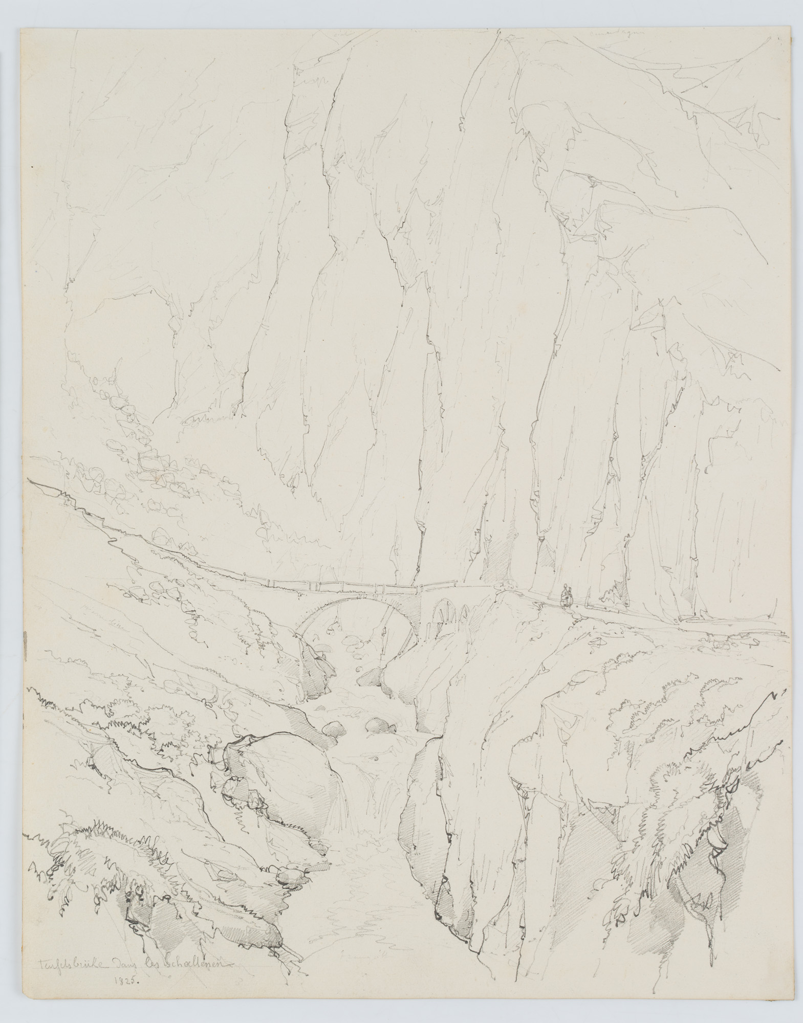 Edmond de Bretenières (1804 Dijon – 1882 ibid.), View of the Devil’s Bridge in the Reuss Valley in the Canton of Uri, Switzerland, 1825, Pencil
