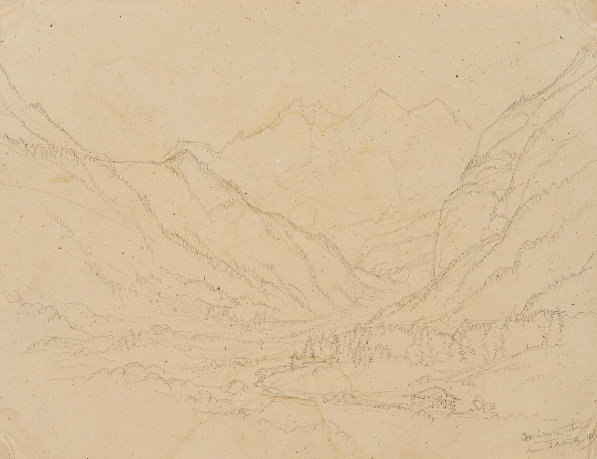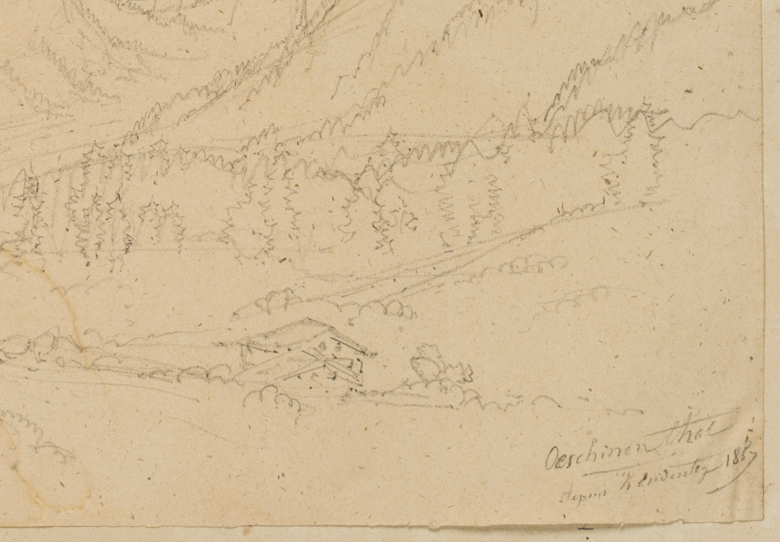 Edmond de Bretenières (1804 Dijon – 1882 ibid.), Vallée d’Oeschinen near Kandersteg in the Canton of Bern, Trip to Switzerland, Sketchbook, 1859, Pencil