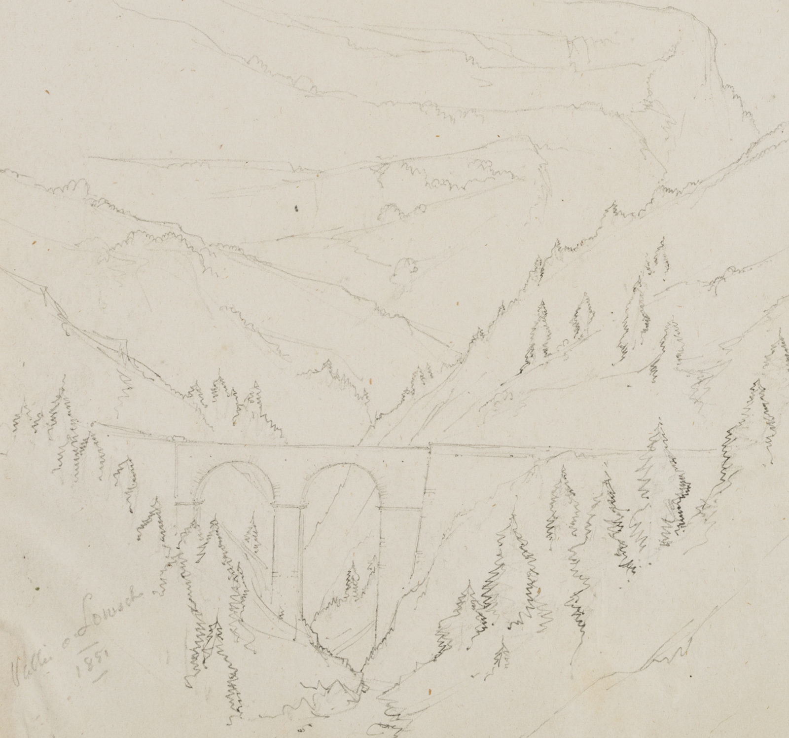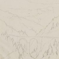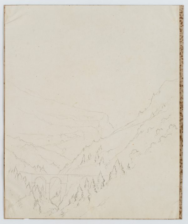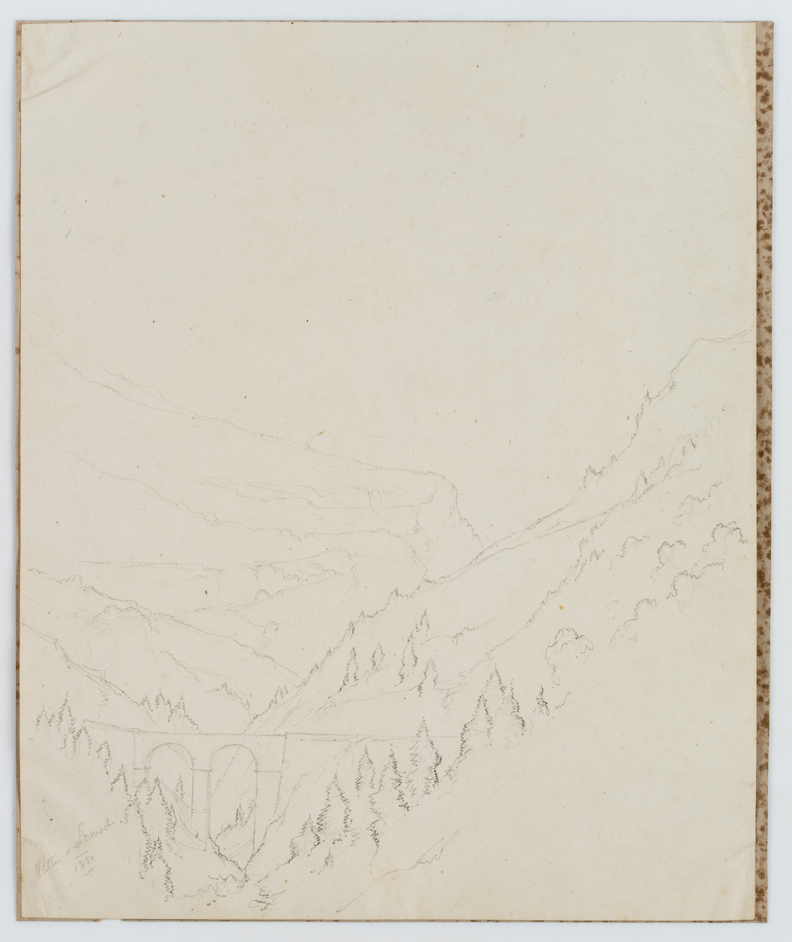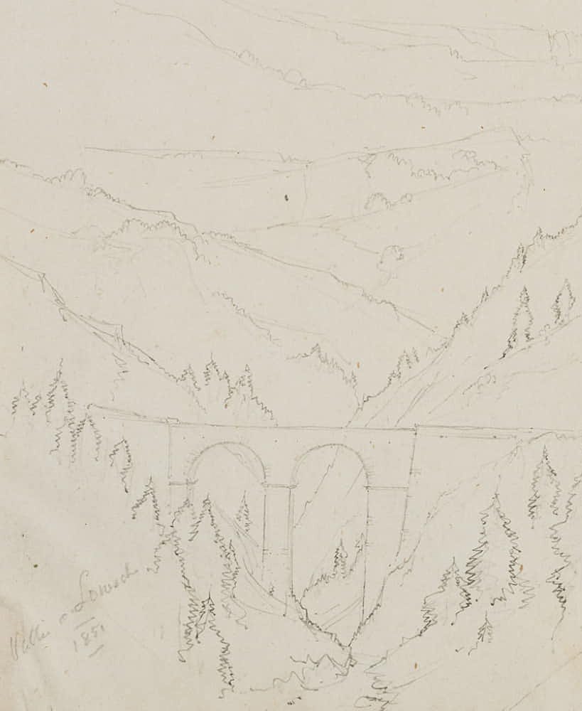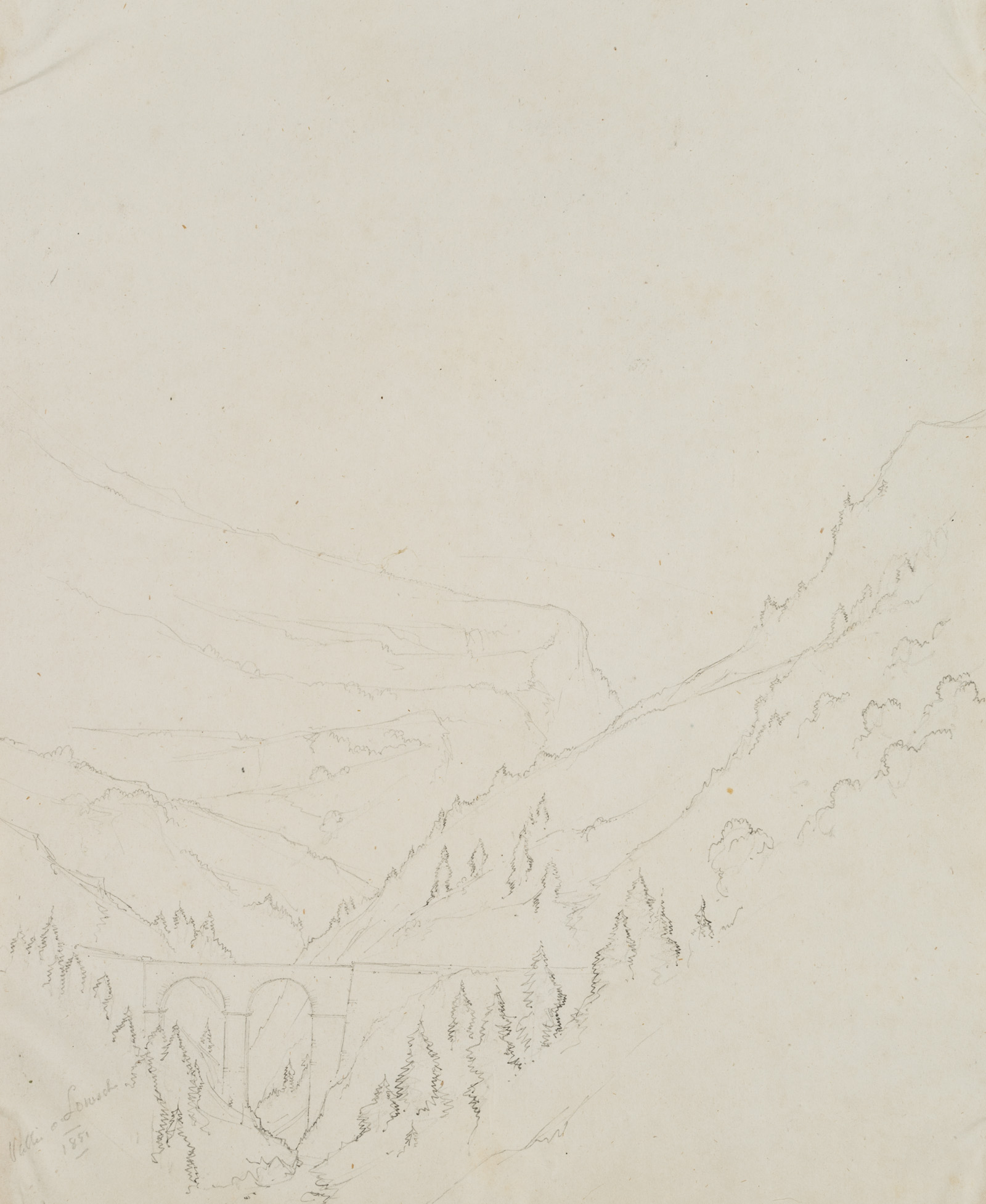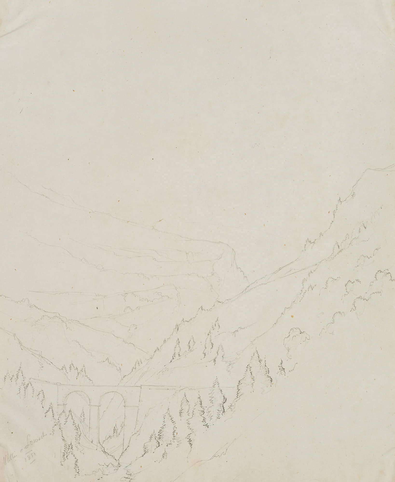 Edmond de Bretenières (1804 Dijon – 1882 ibid.), Viaduct near Leuk in the Dalatal in the canton of Valais, Loéche-les-Bains, Leiggerbad, “Vallée a Louesch”, Trip to Switzerland, Sketchbook, 1851, Pencil