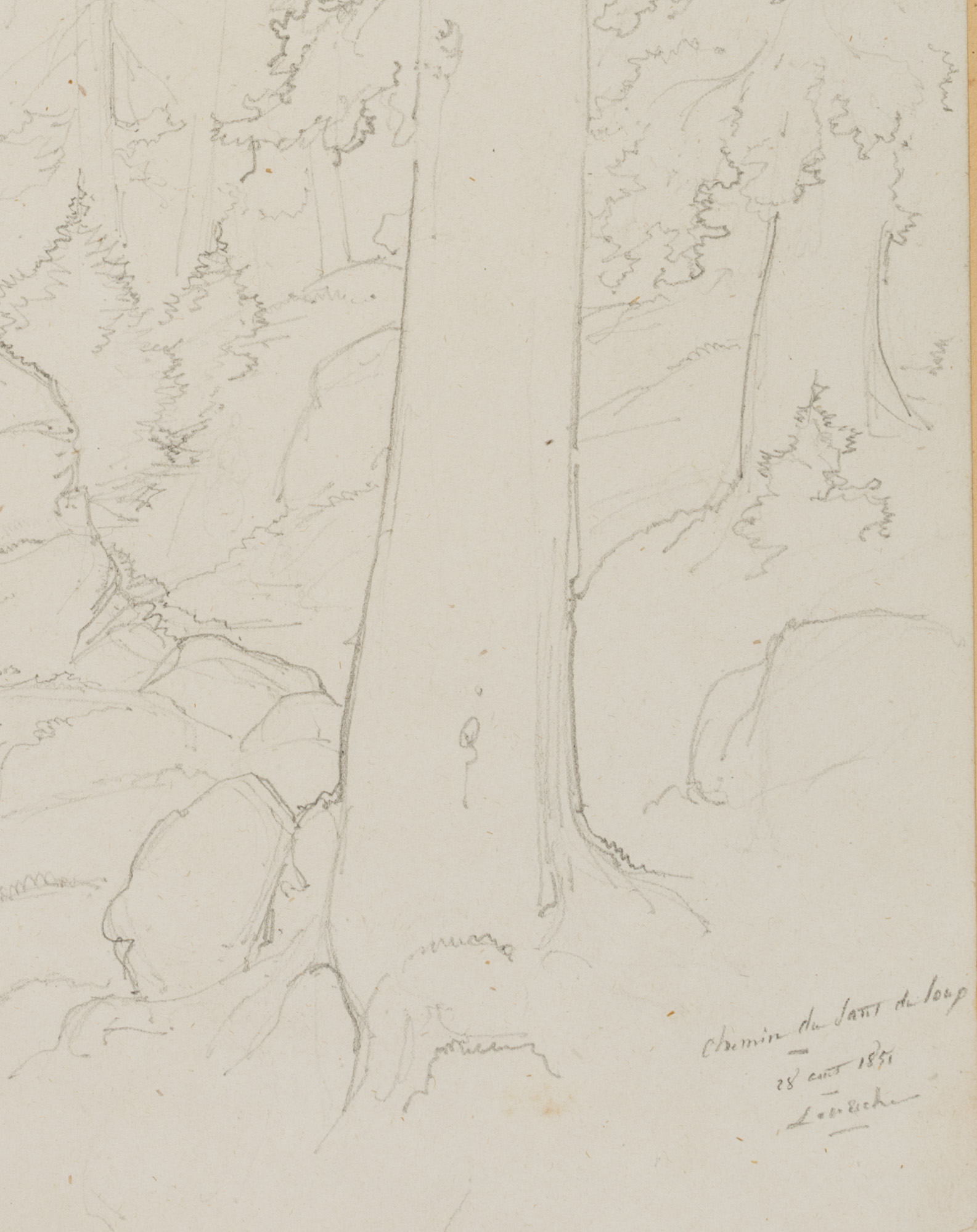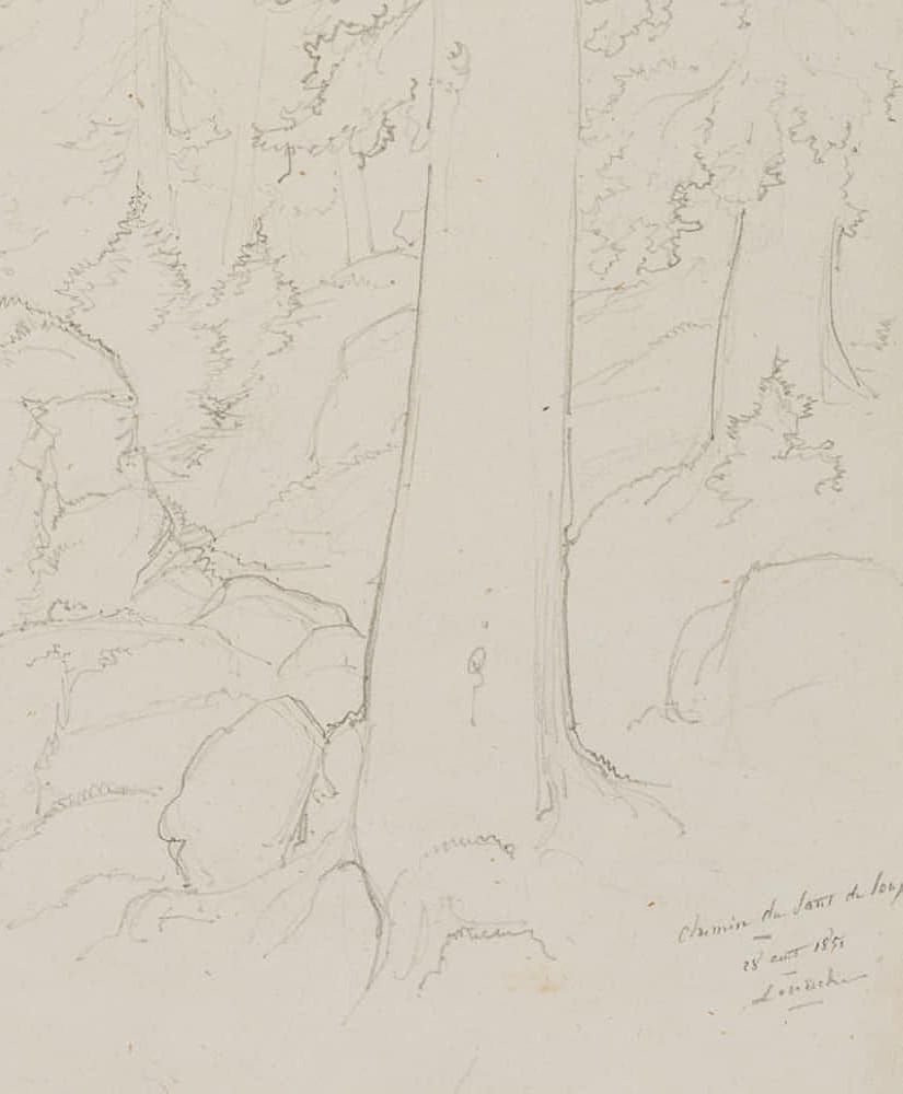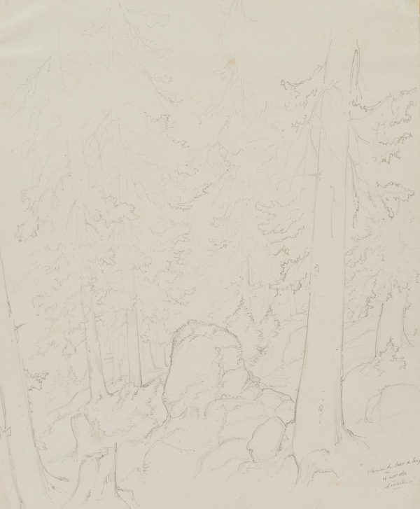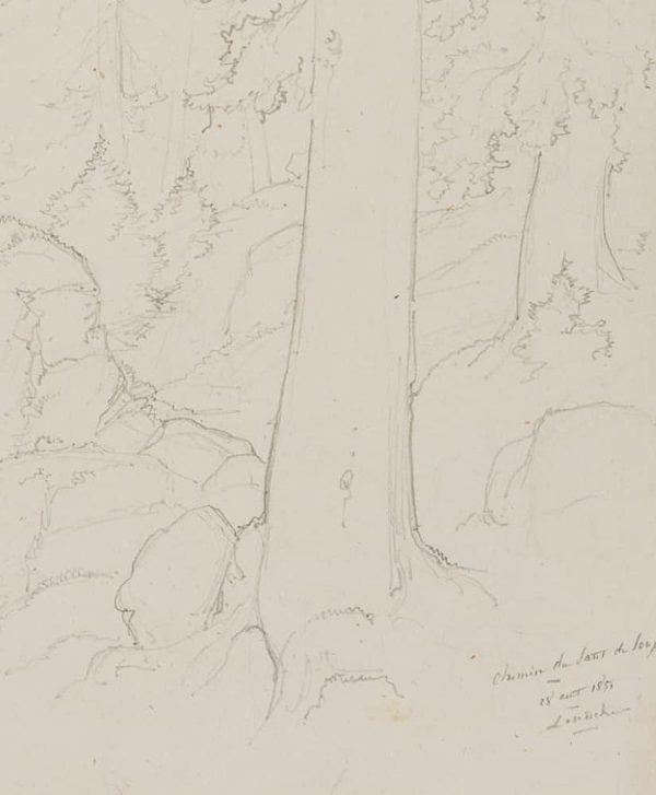 Edmond de Bretenières (1804 Dijon – 1882 ibid.), Forest near Saut du Loup in the Canton of Valais, Loéche, Leigg, “Chemin du Saut du Loup à Louesch”, Journey to Switzerland, Sketchbook, 1851, Pencil