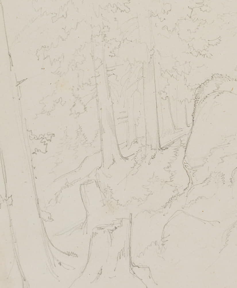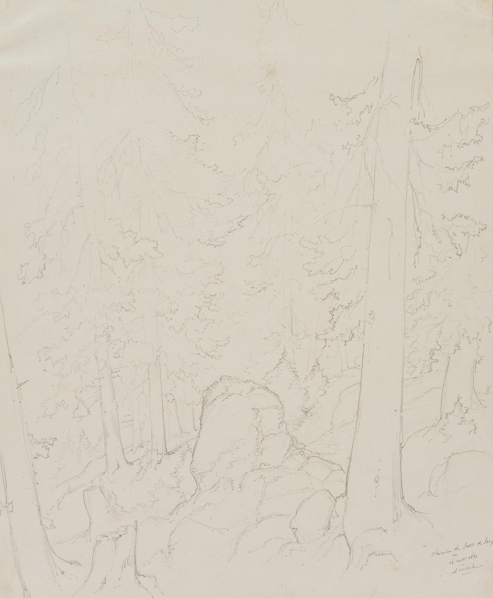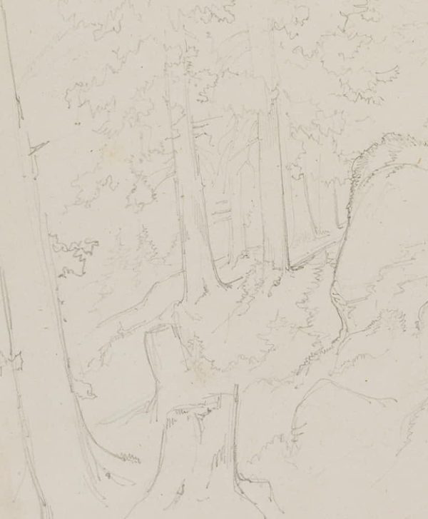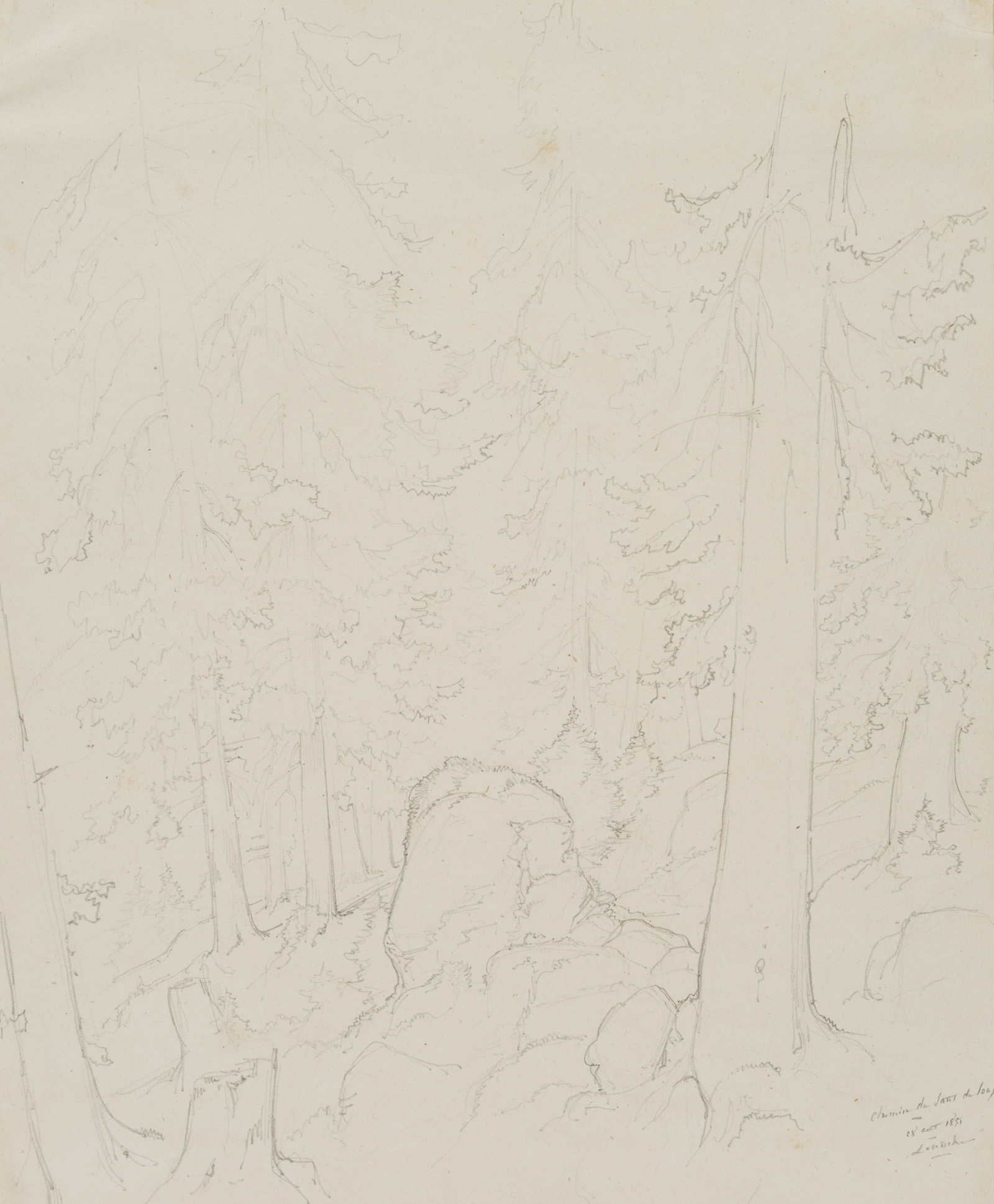 Edmond de Bretenières (1804 Dijon – 1882 ibid.), Forest near Saut du Loup in the Canton of Valais, Loéche, Leigg, “Chemin du Saut du Loup à Louesch”, Journey to Switzerland, Sketchbook, 1851, Pencil