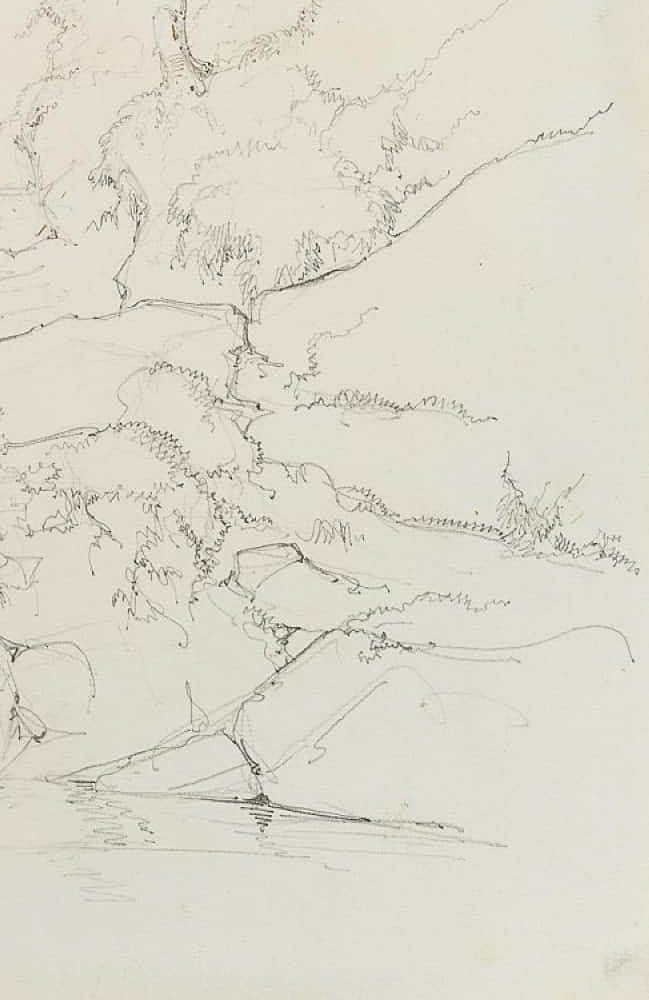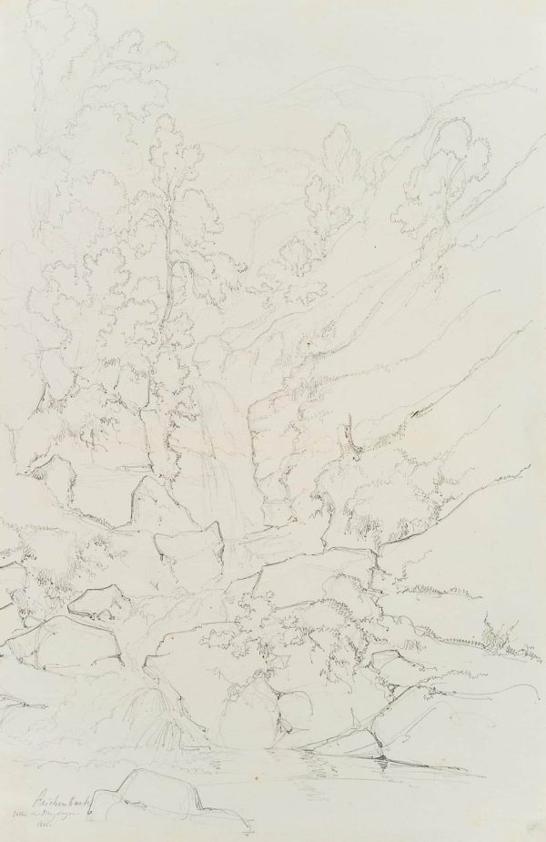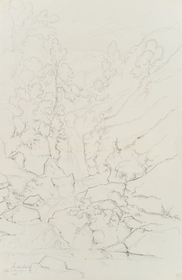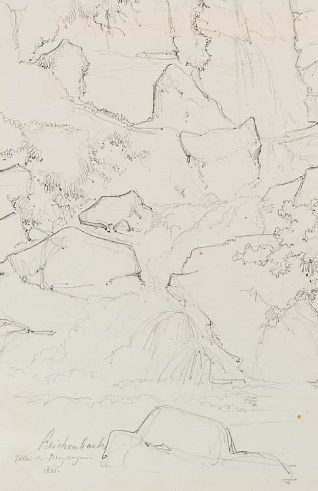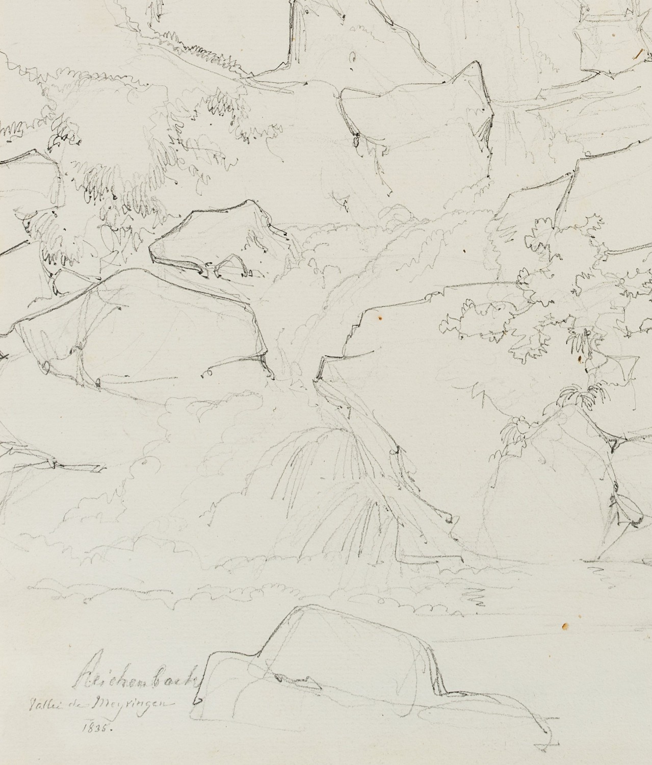 Edmond de Bretenières (1804 Dijon – 1882 ibid.), Waterfall near Meiringen in the Reichenbach Valley, Journey to Switzerland, Sketchbook, 1835, Pencil