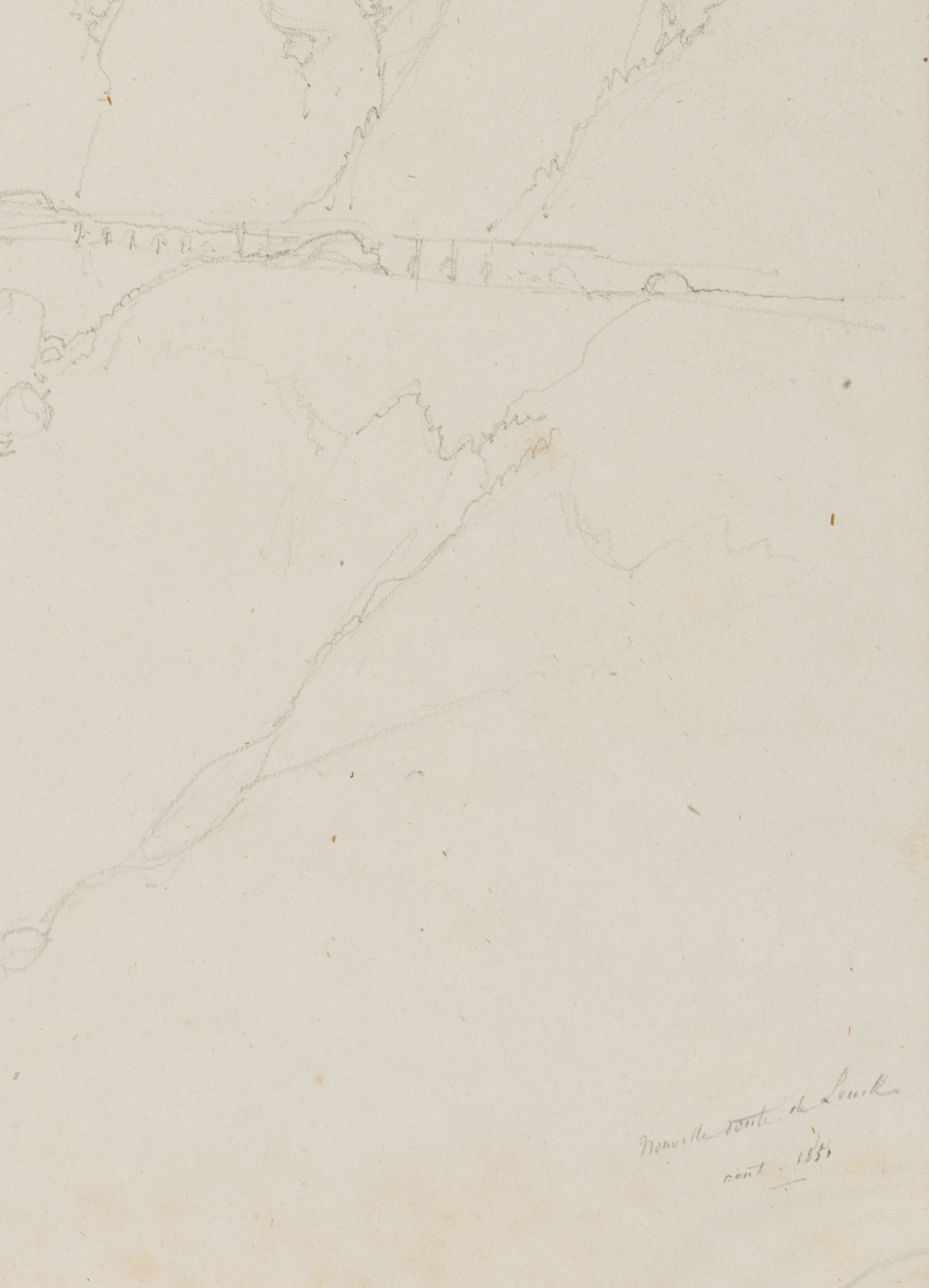 Edmond de Bretenières (1804 Dijon – 1882 ibid.), Road to Leuk in the Dala Gorge in the Canton of Valais, Loéche, Leigg, “Vallée du Louesch”, Journey to Switzerland, Sketchbook, 1851, Pencil