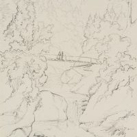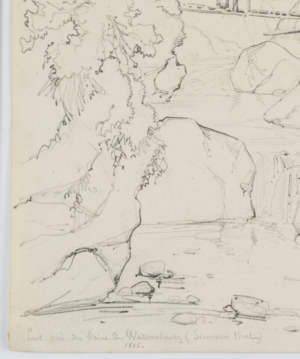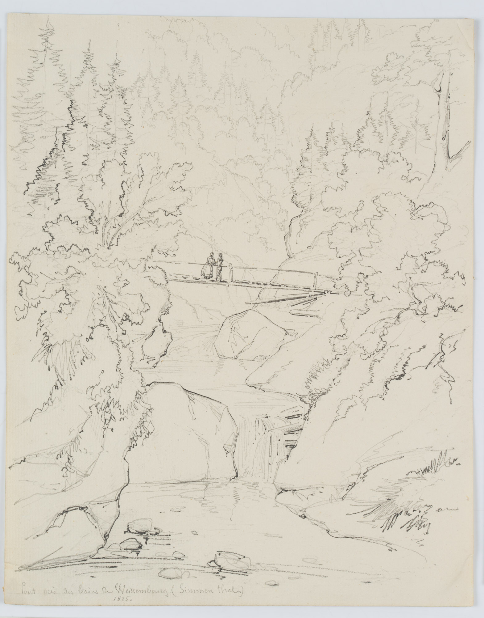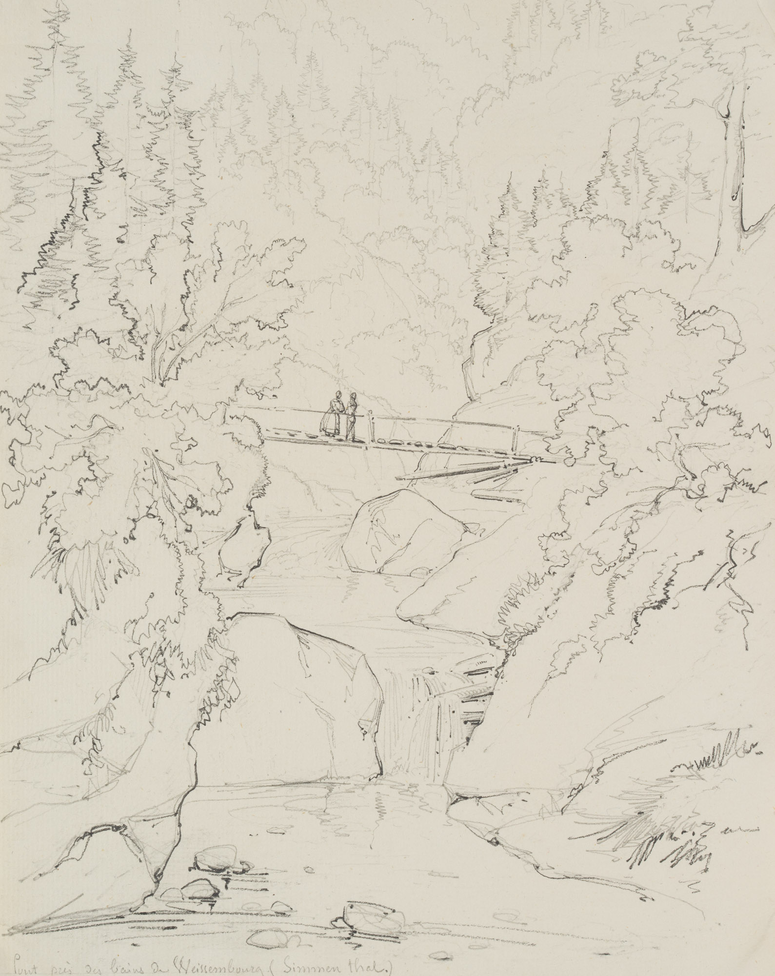 Edmond de Bretenières (1804 Dijon – 1882 ibid.), Bridge near Weissenburg in the Simmental in Switzerland, 1825, Pencil