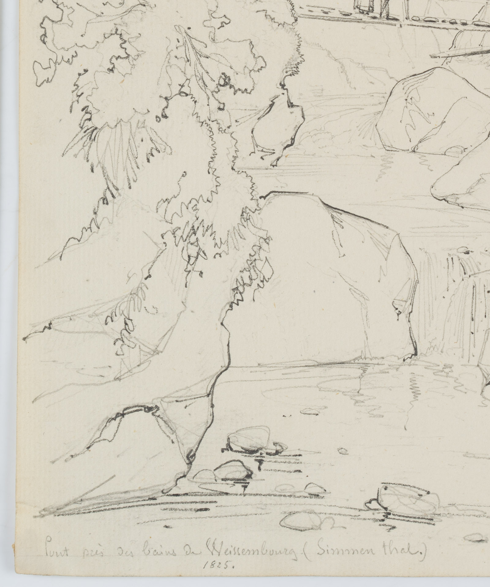 Edmond de Bretenières (1804 Dijon – 1882 ebd.), Brücke bei Weissenburg im Simmental in der Schweiz, 1825, Bleistift