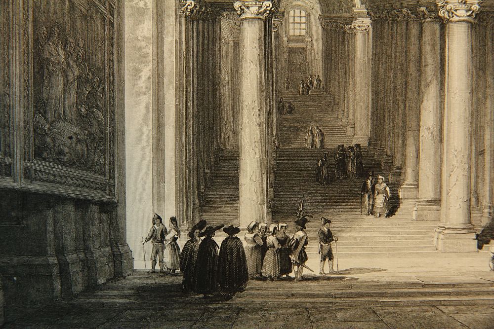Ebenezer Challis (19th century), Bernini’s Scala Regia (1663-1666) in the Vatican Palace, 19th century, Steel engraving