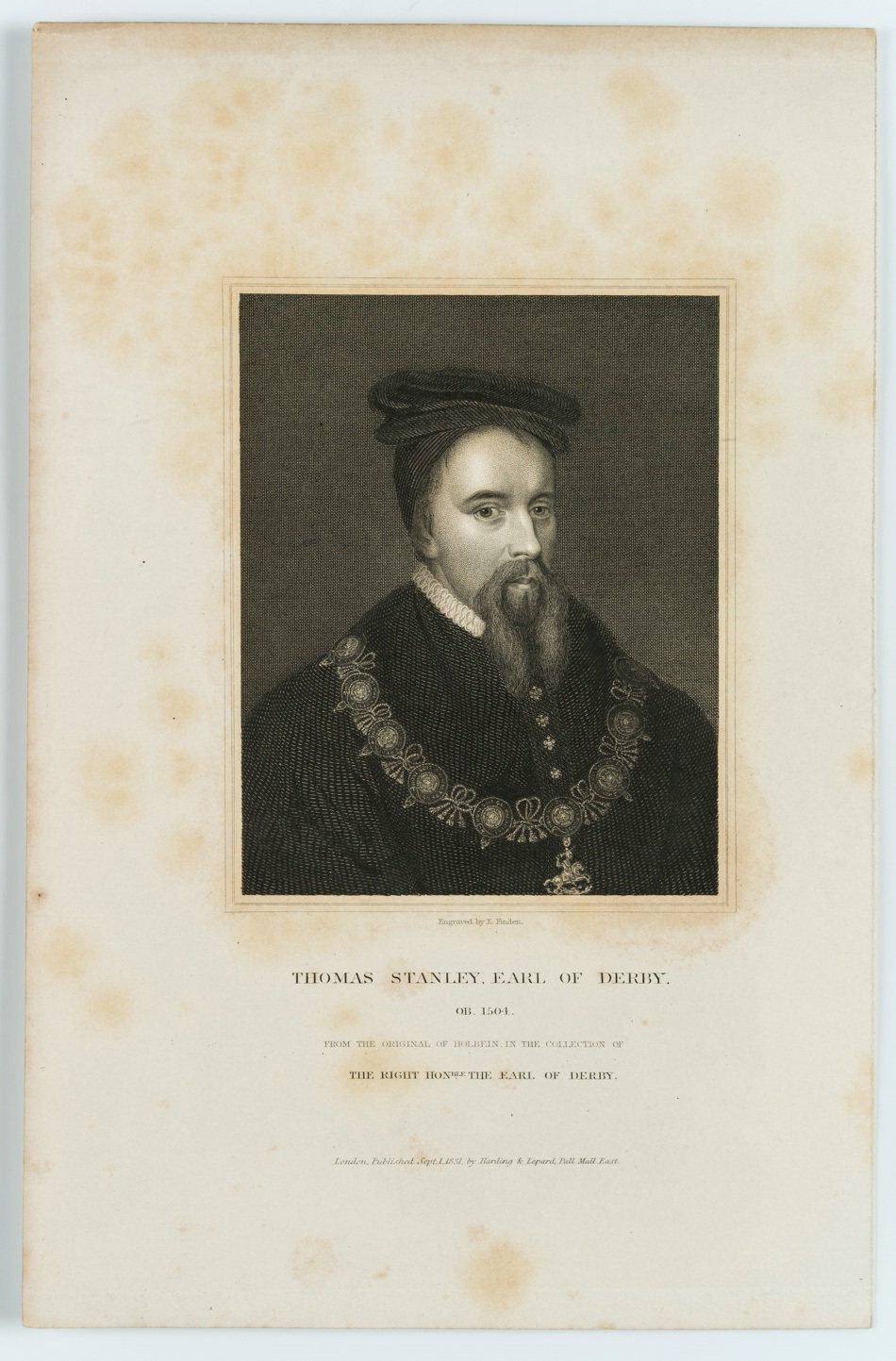 • Inscription: Unten signiert und betitelt: “Thomas Stanley, Earl of Derby. OB. 1504. From the Original of Holbein. in the collection of The Right Honble. The Earl of Derby.”