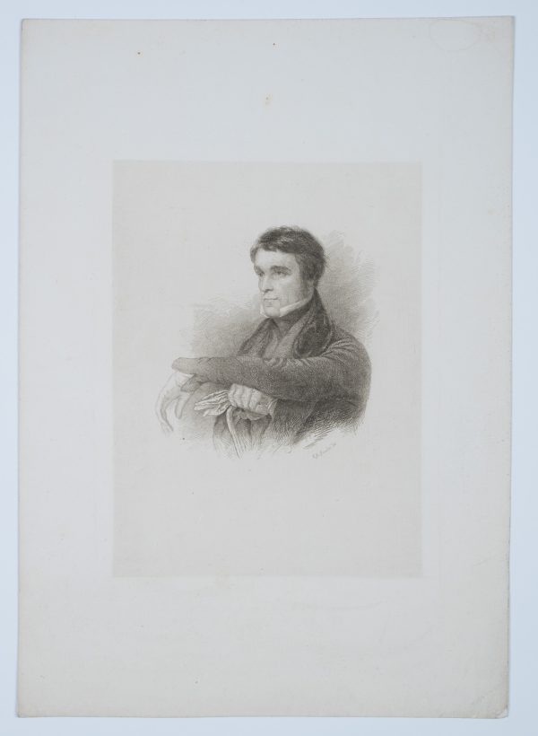 Edward A. Fowle (around 1847 – 1856 ibid.), Chest portrait of a nobleman in three-quarter profile with folded arms and stick in hand, 19th century, Steel engraving