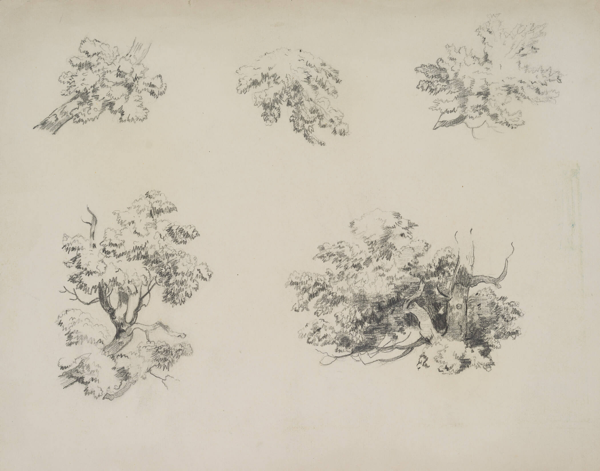 Eduard Fürstenau (1862 Marburg – 1938 Berlin), 5 Tree studies, c. 1920, Pencil