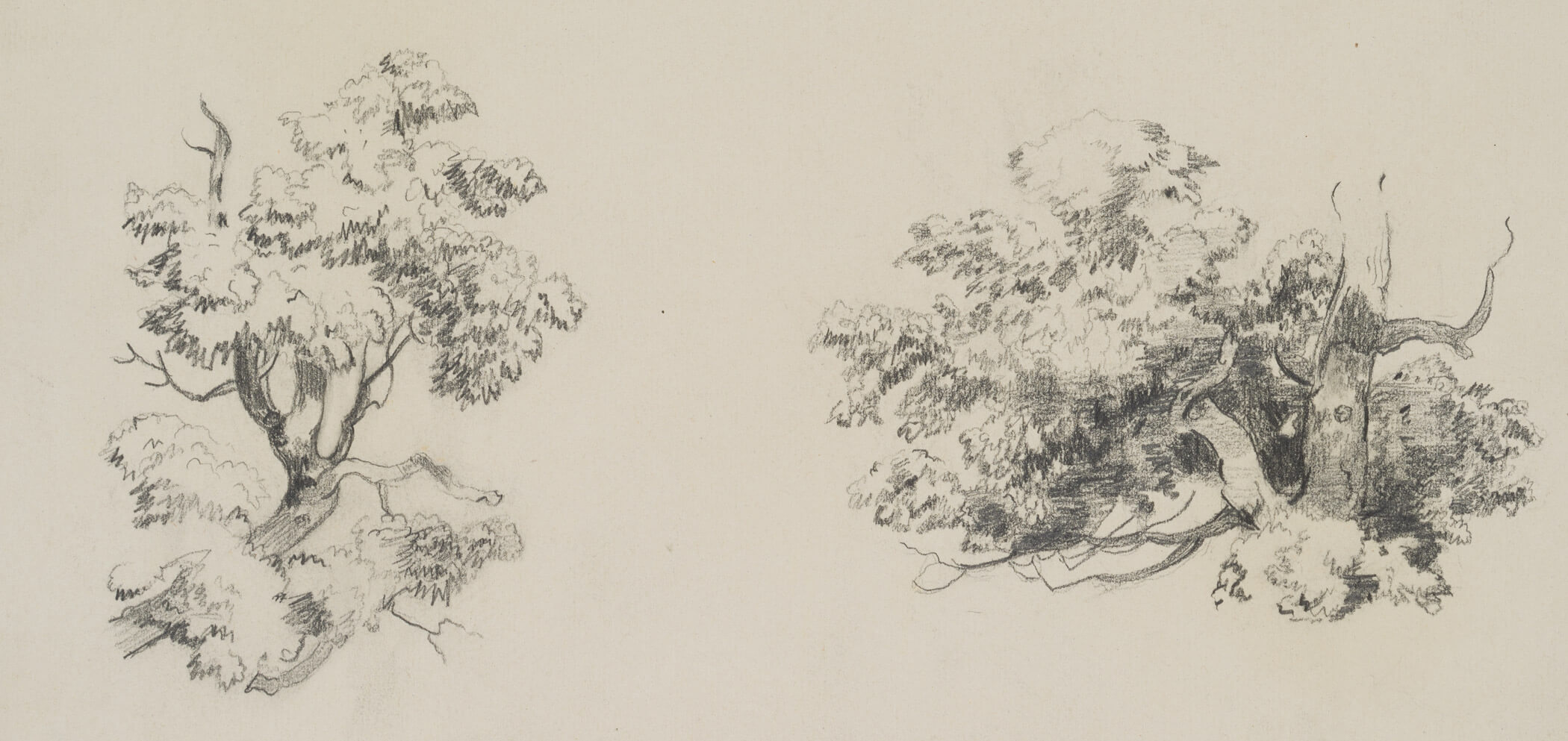 - Schlagworte: Baumstudie, Naturstudie, Blätterstudie, Laubbaum, Stamm, Ast, Blätter, Sommer, Natur, Deutschland, Romantik, 1900-1924